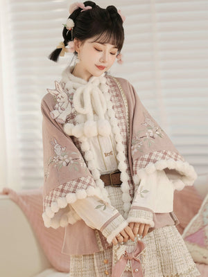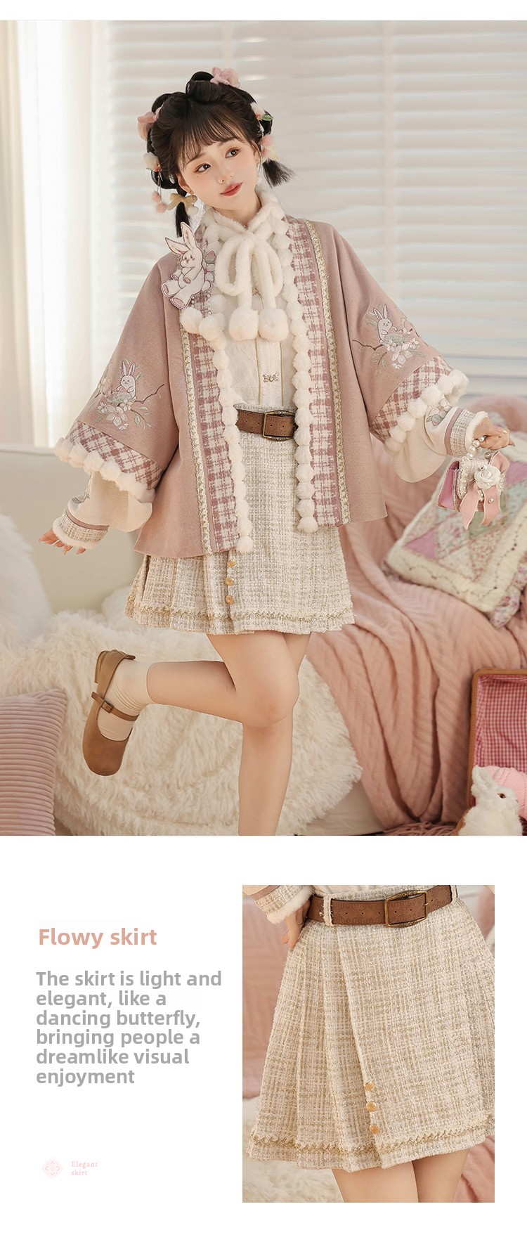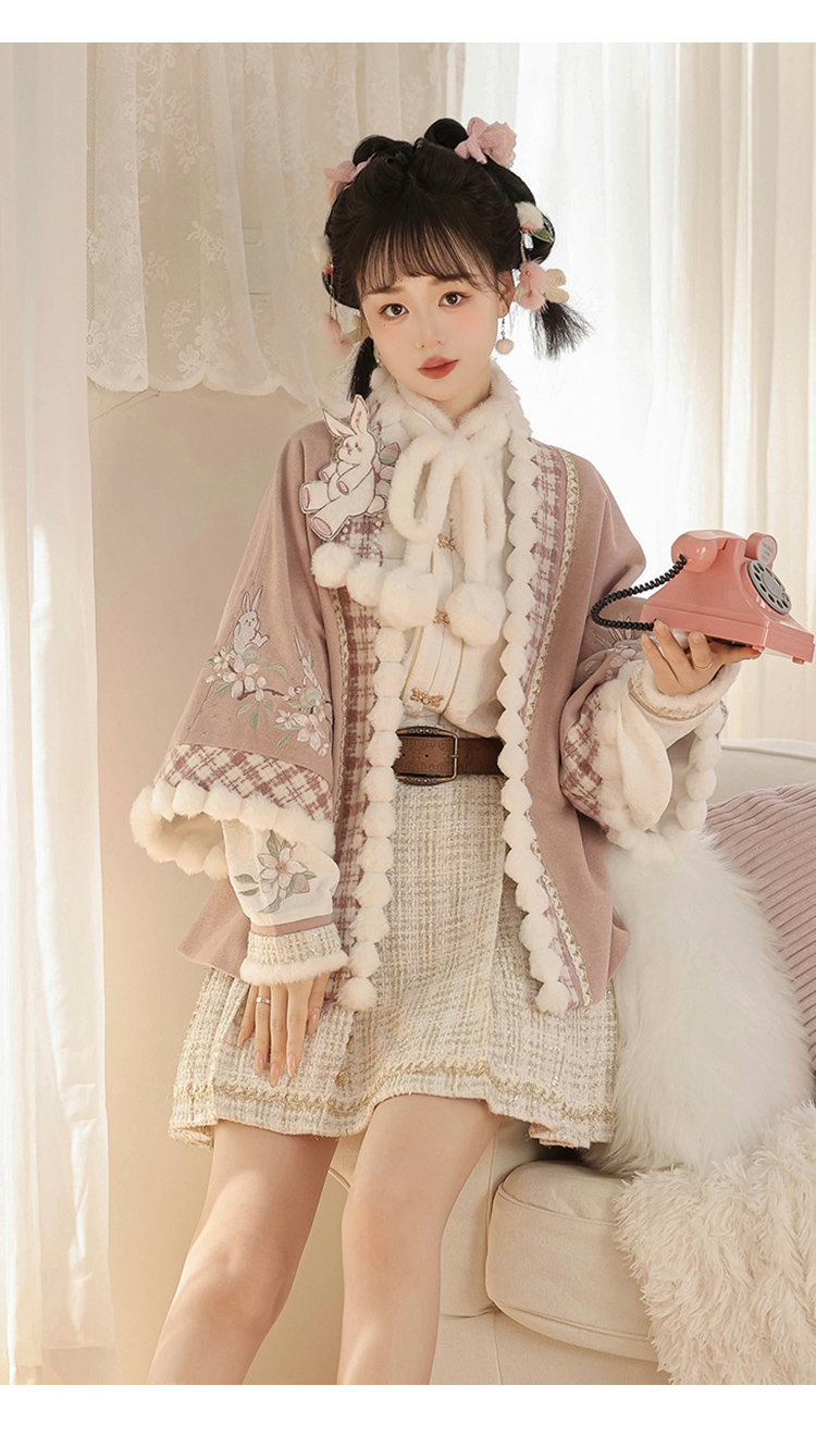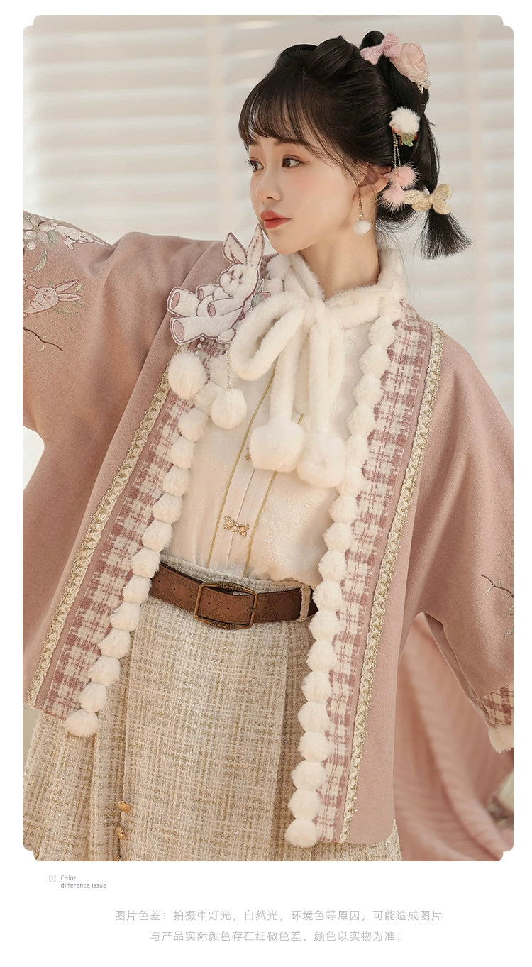 Pink Modern Hanfu-Inspired Outfit – New Chinese Top & Midi Skirt Set for Autumn/Winter