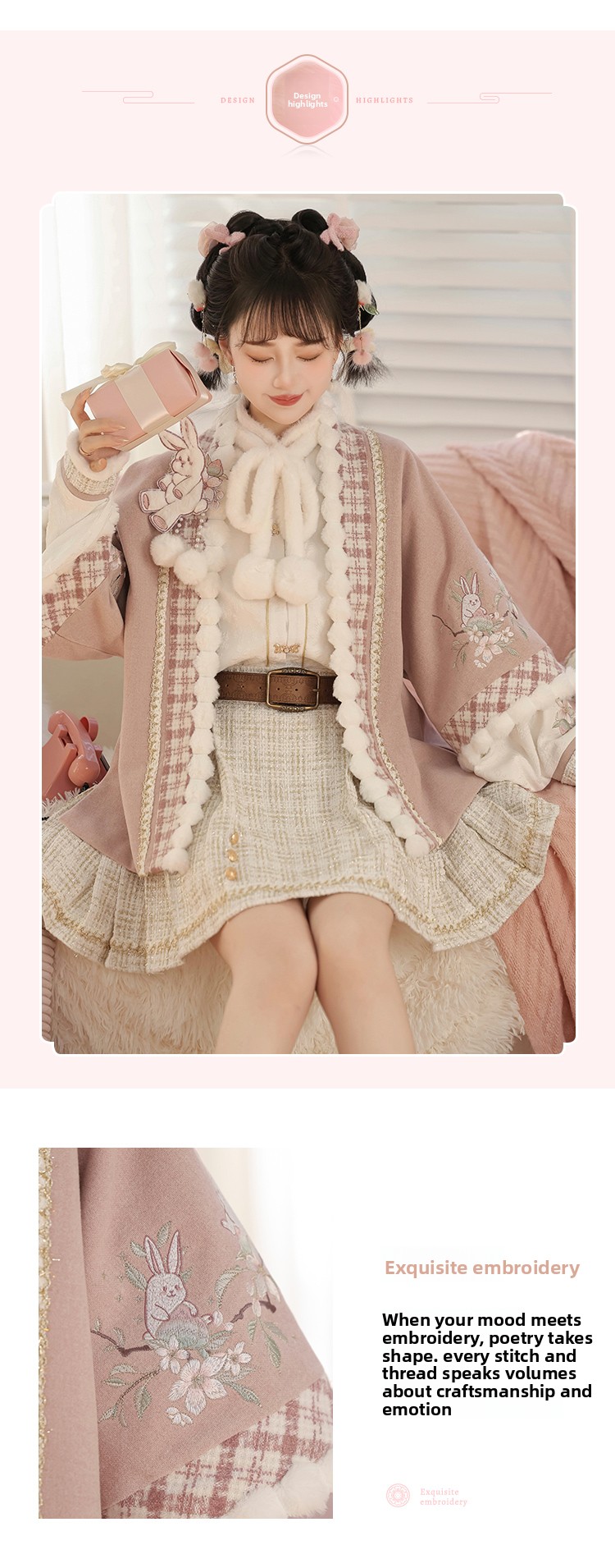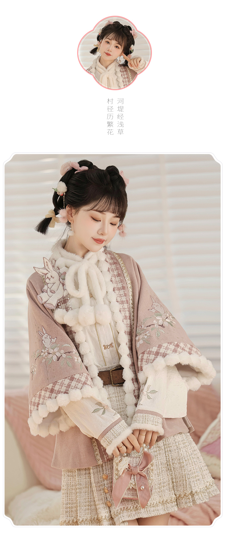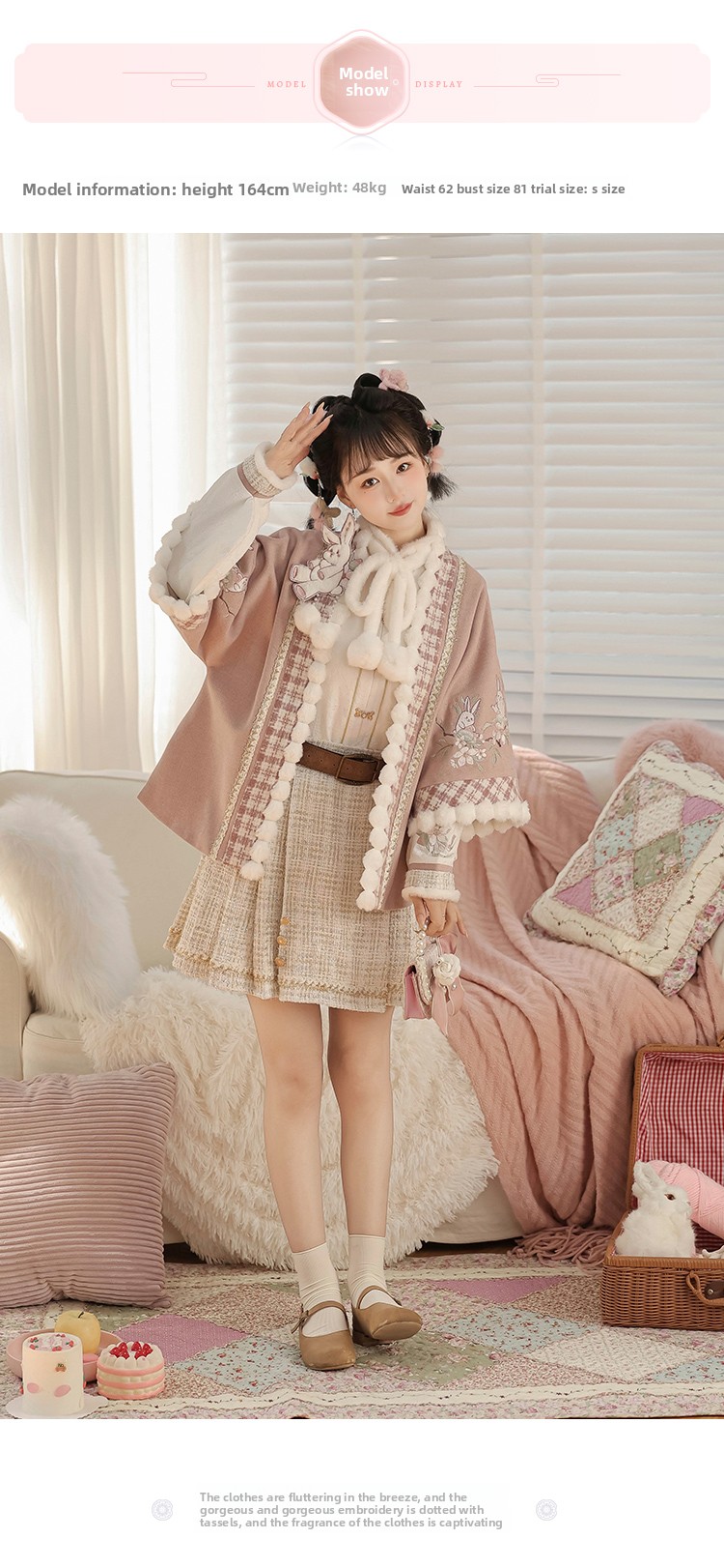 Pink Modern Hanfu-Inspired Outfit – New Chinese Top & Midi Skirt Set for Autumn/Winter