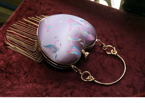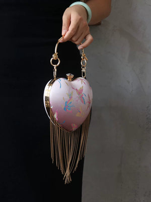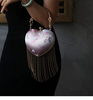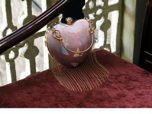 Pink Heart Shaped Kiss Lock Bag | Retro Fringe Crossbody Chinese Style
