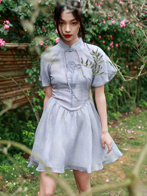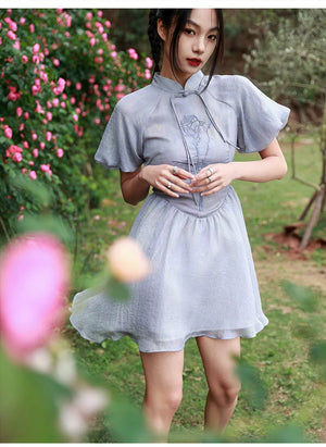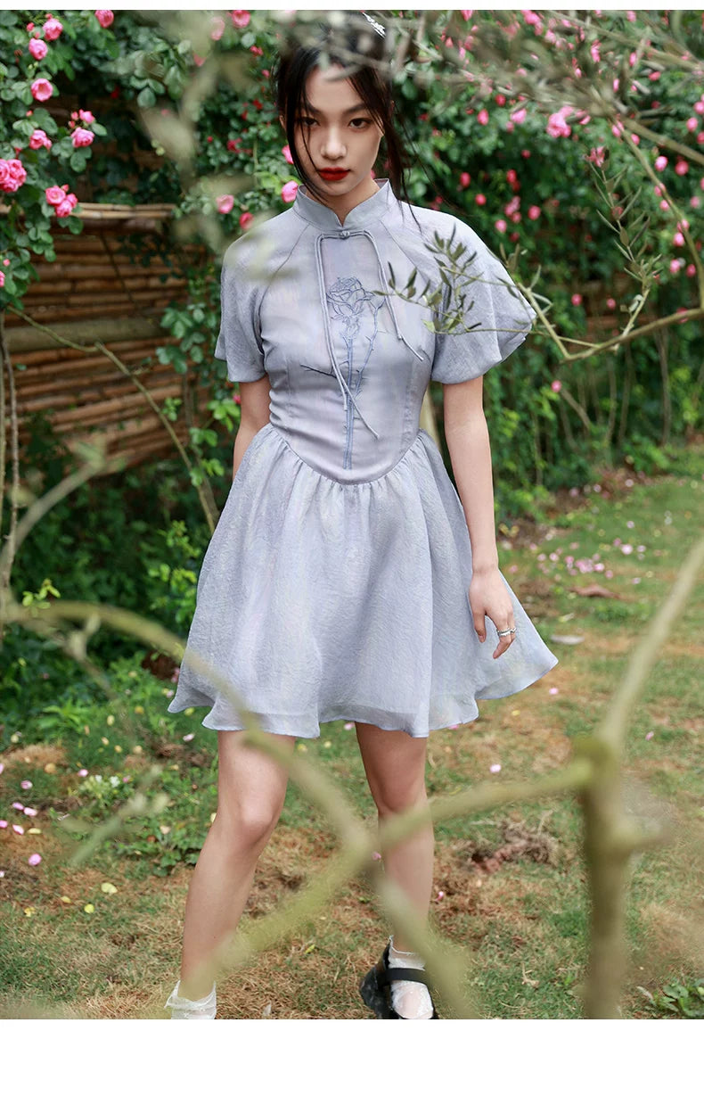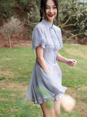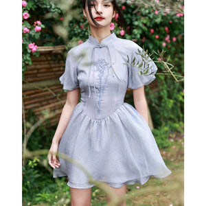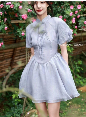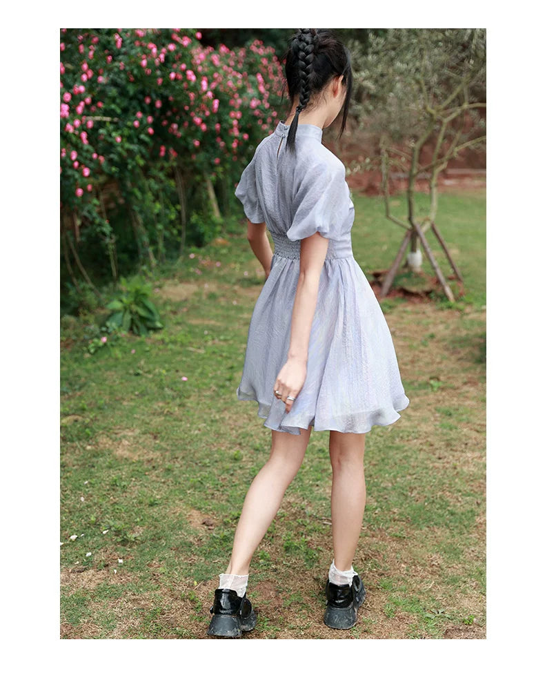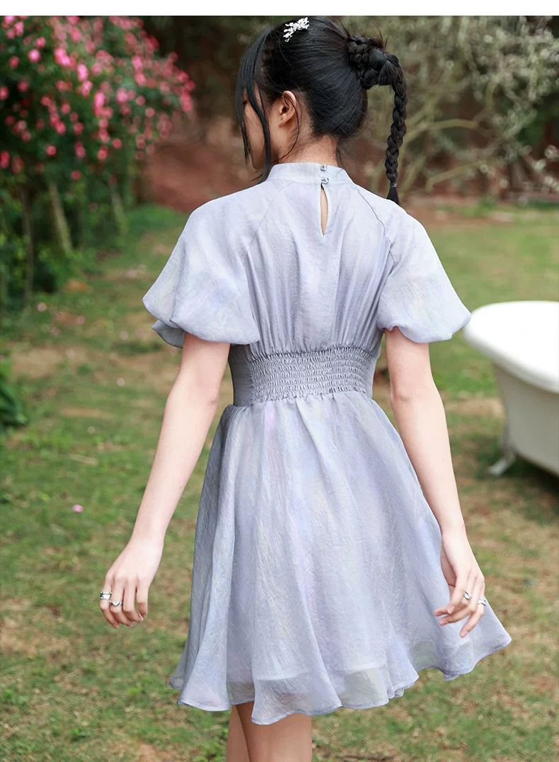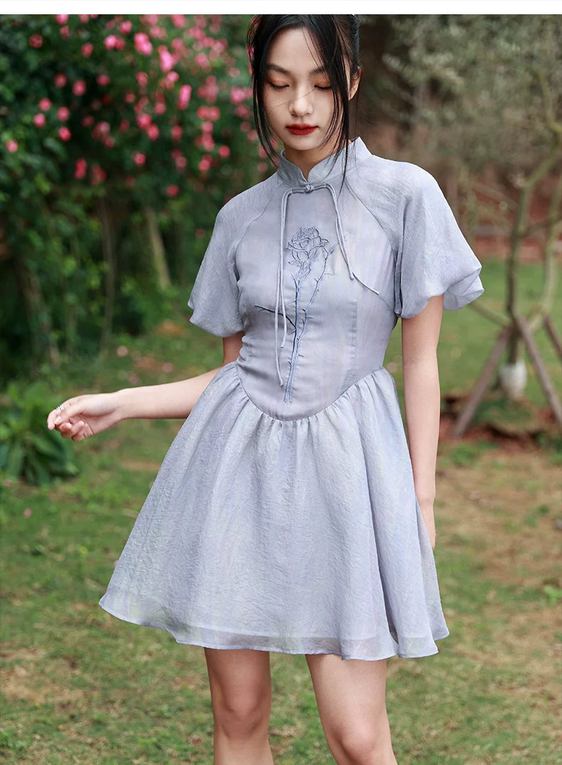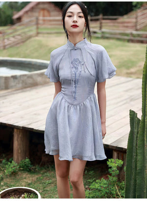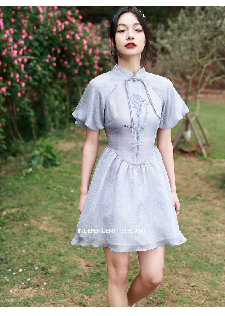 This beautiful purple chiffon dress combines elegant national style design with a flattering slim-fit silhouette, perfect for spring and summer occasions. Crafted from lightweight, breathable chiffon fabric with a comfortable lining, this short dress offers both style and comfort. The sophisticated purple color and refined cut make it ideal for cultural events, casual outings, and special occasions where you want to look effortlessly elegant.