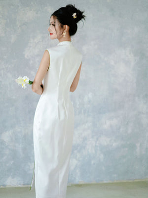 Ruoxi | White Thin Engagement Dress & Wedding License Cheongsam