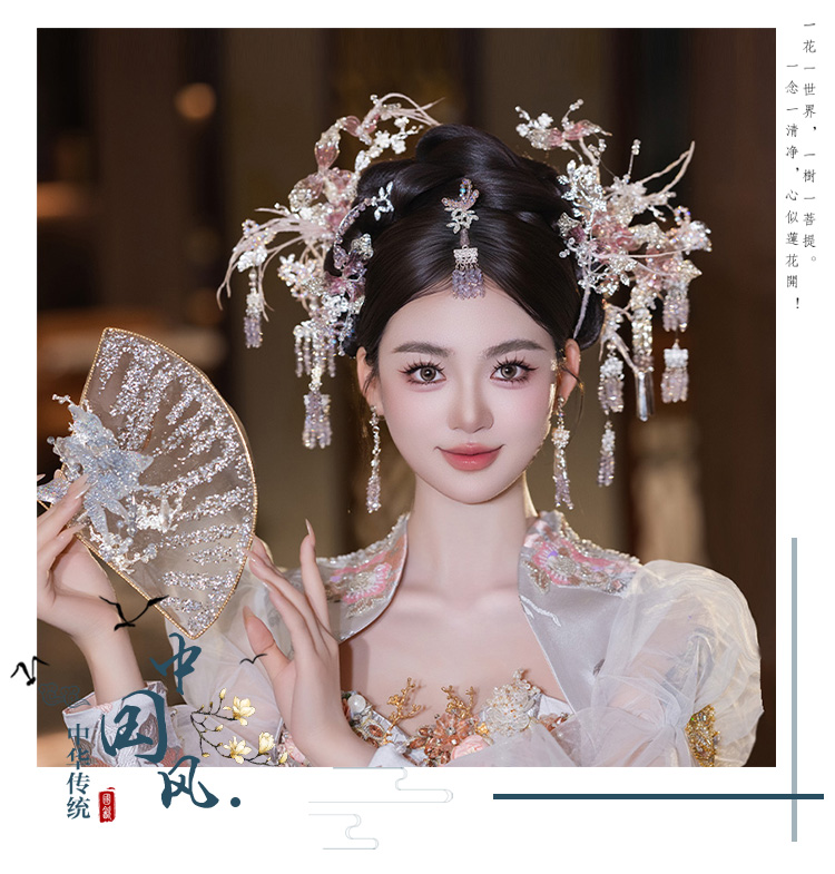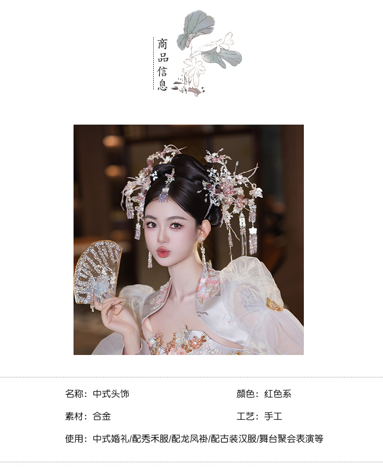 Silver Pink Chinese Bridal Hairpin Set – Elegant Crystal Headpiece for Hanfu & Qipao Wedding