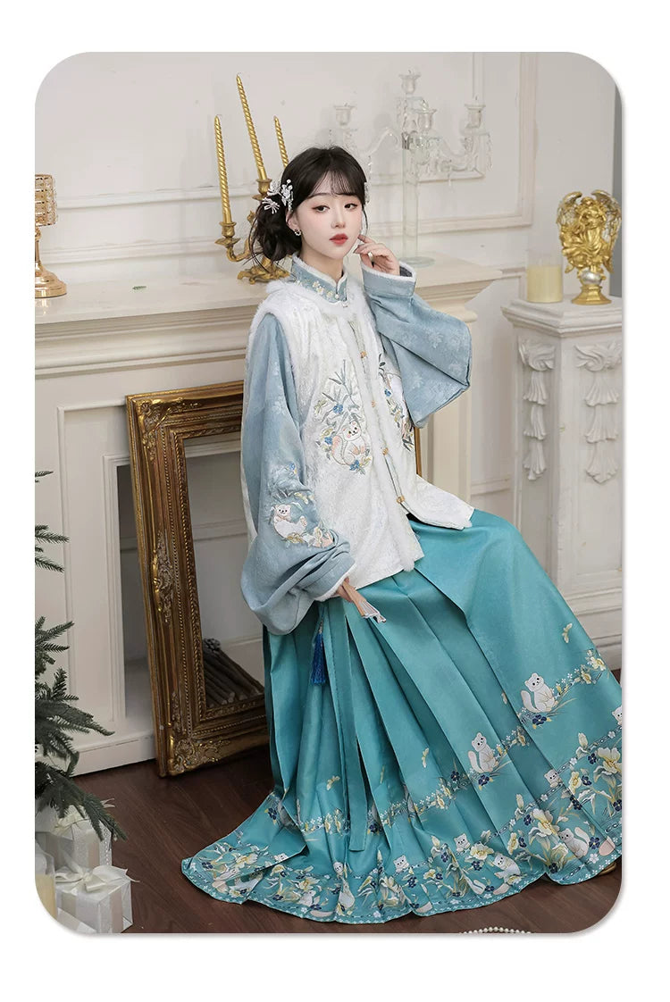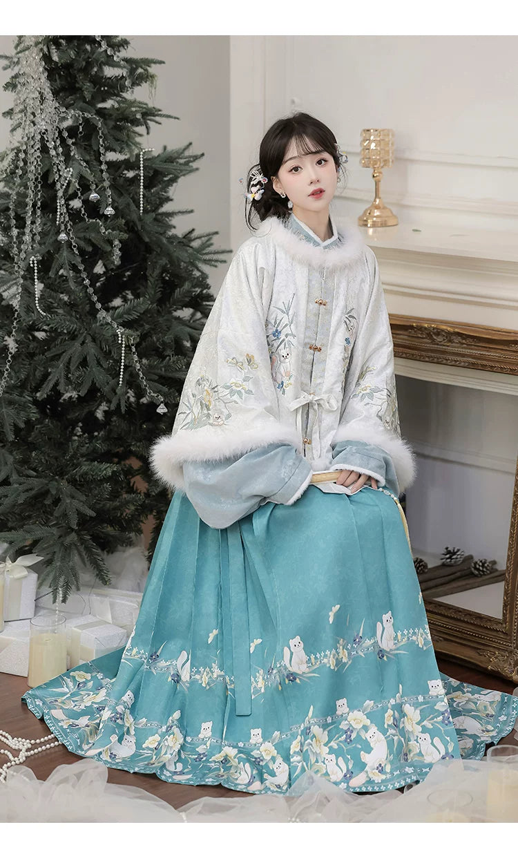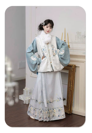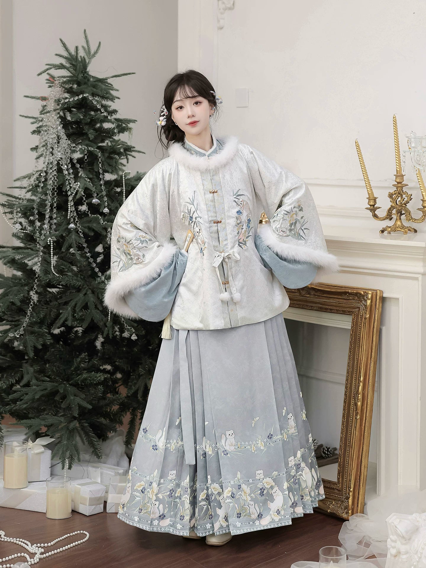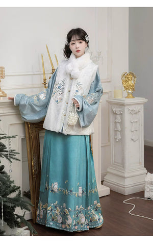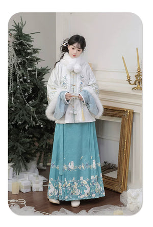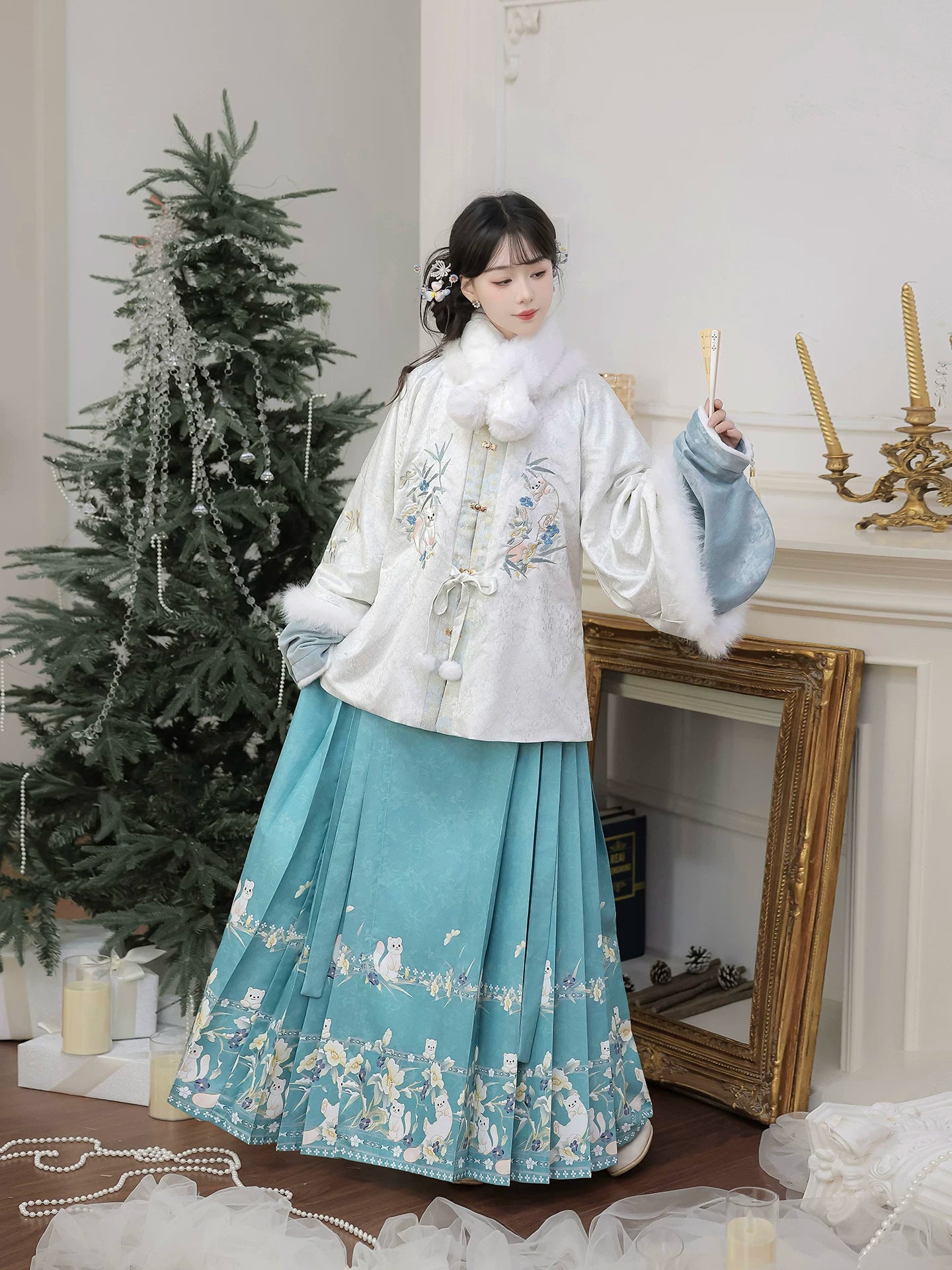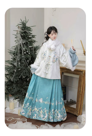 Snow Baby Ming Dynasty Hanfu Set | Round Neck Bijia Horse Face Skirt Winter