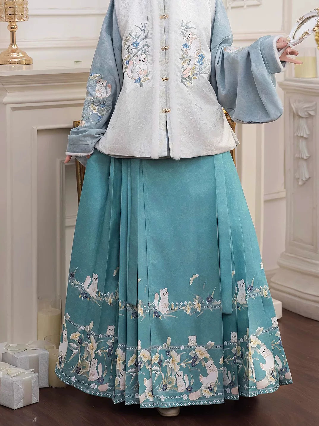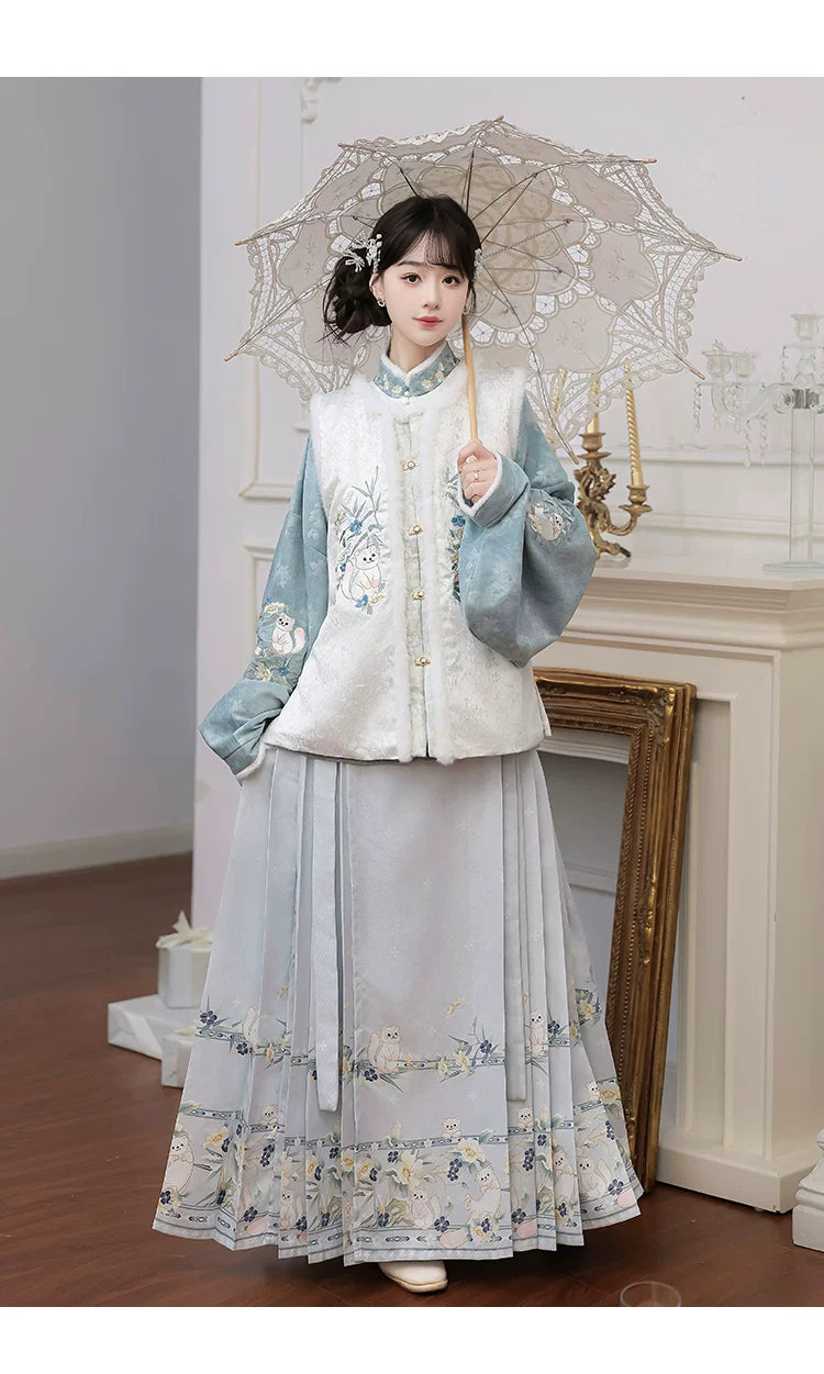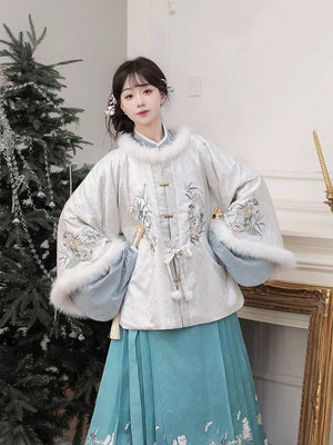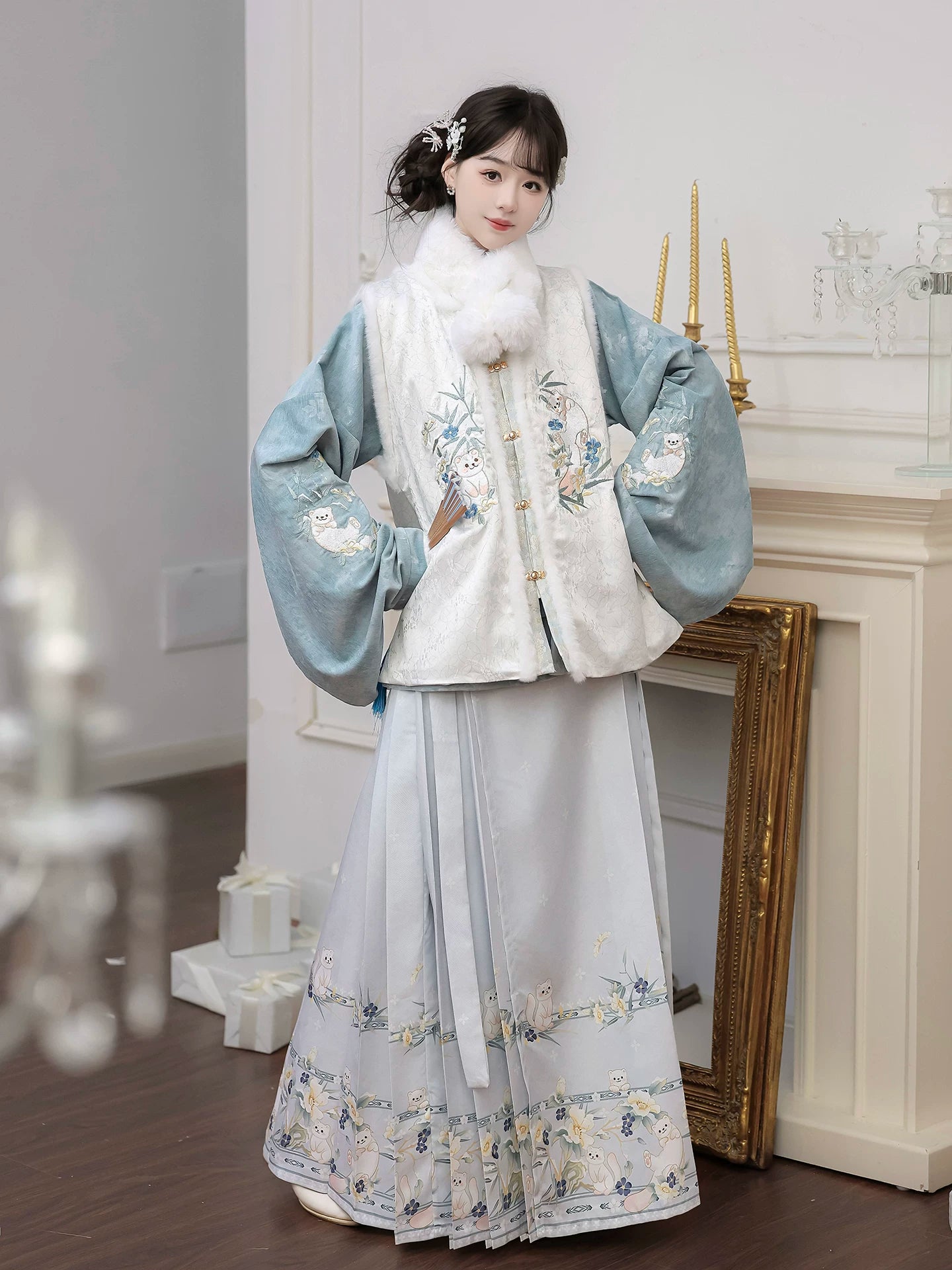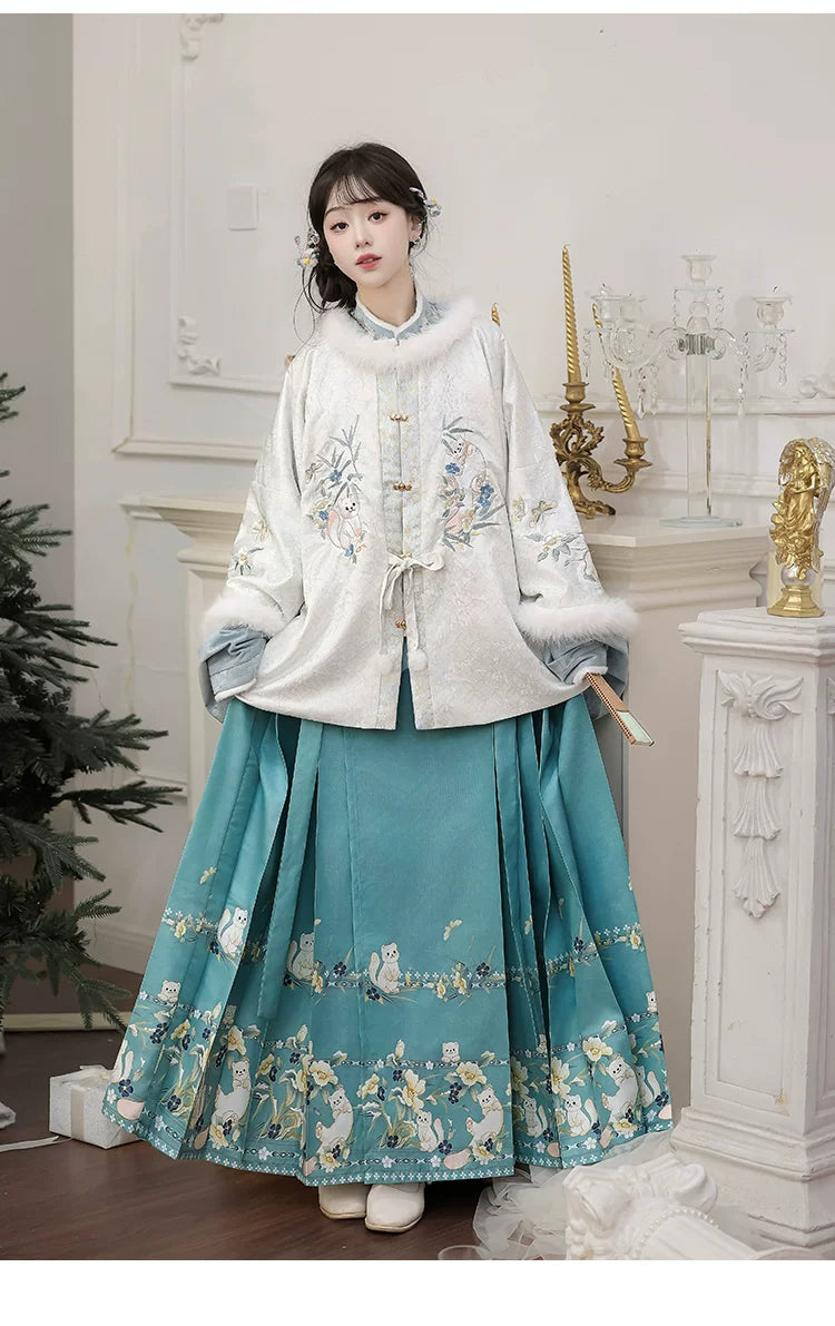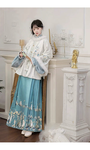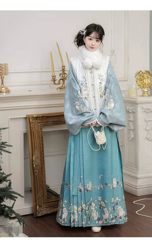 Snow Baby Ming Dynasty Hanfu Set | Round Neck Bijia Horse Face Skirt Winter