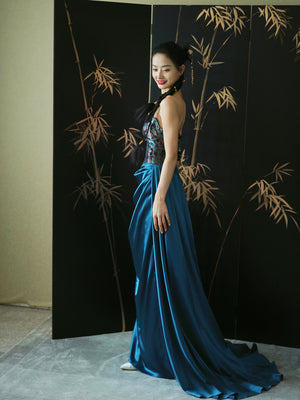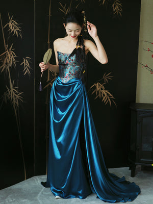 Vestido de novia de tubo en jacquard "Gorrión", con cola de sirena, para boda, brindis, compromiso