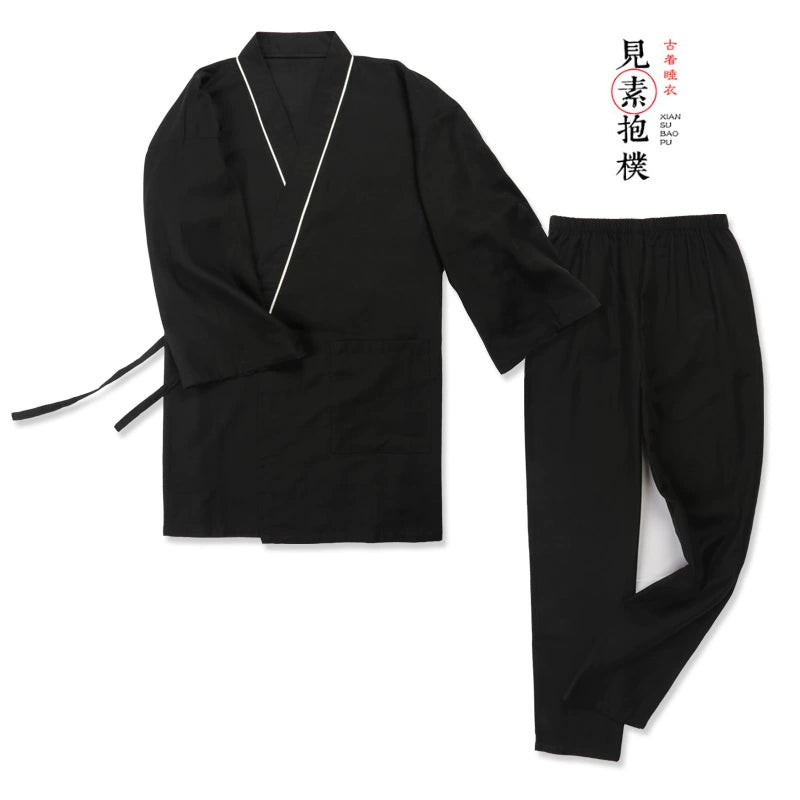 Pijama Hanfu de algodón puro antiguo para hombre, talla grande, primavera y verano