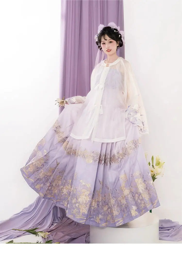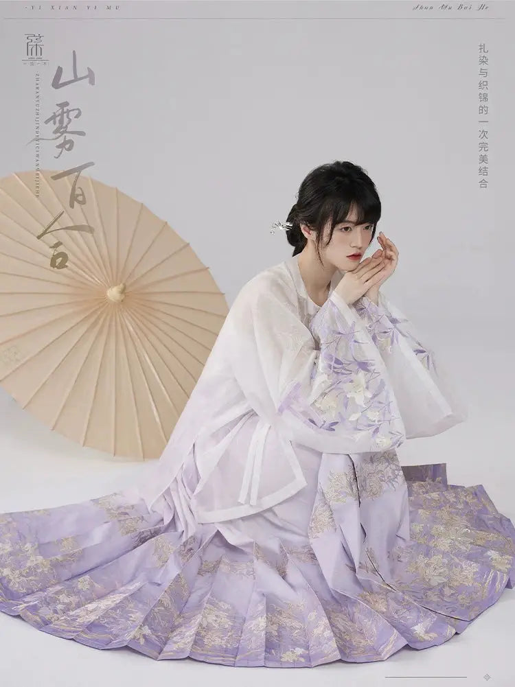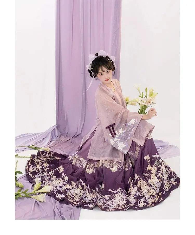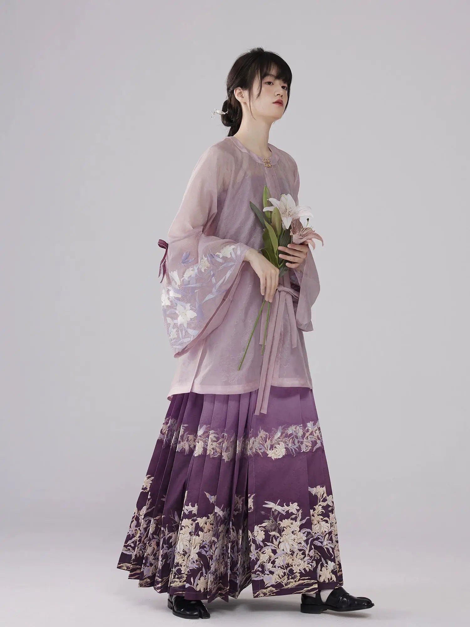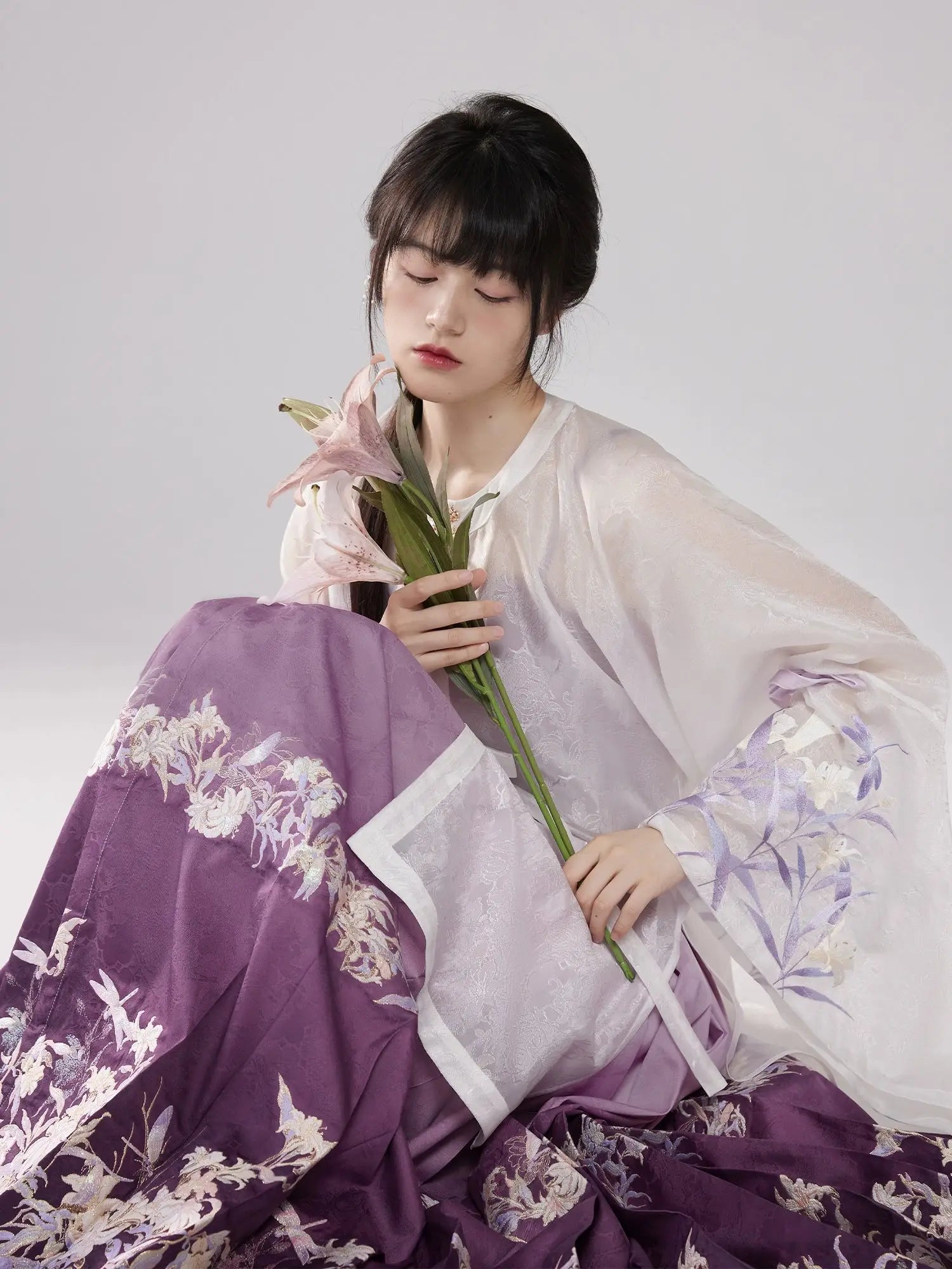 [Lirio de Niebla de Montaña] Vestido de Caballo con Maquillaje de Imitación de Flor, Cuello Redondo, Traje Ming Hanfu para Mujer