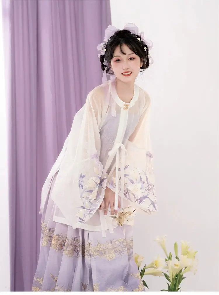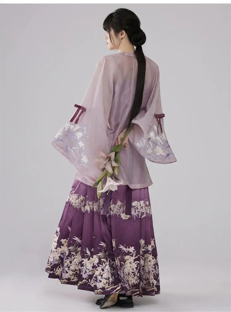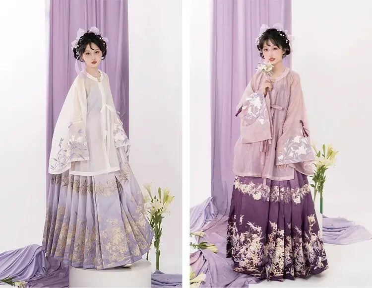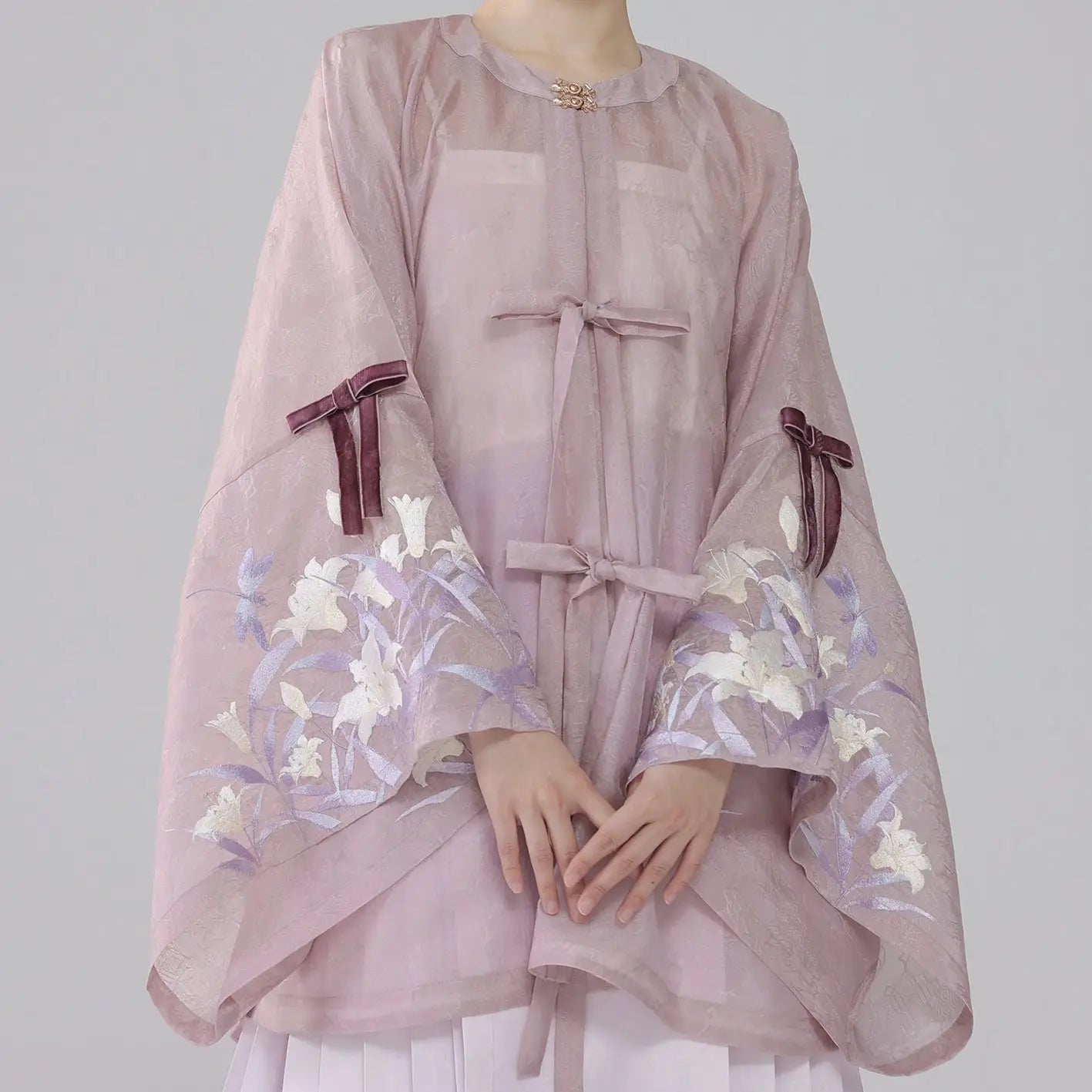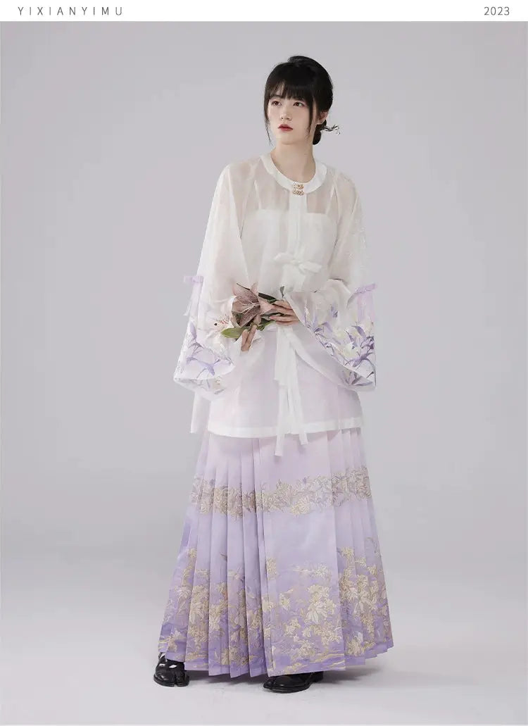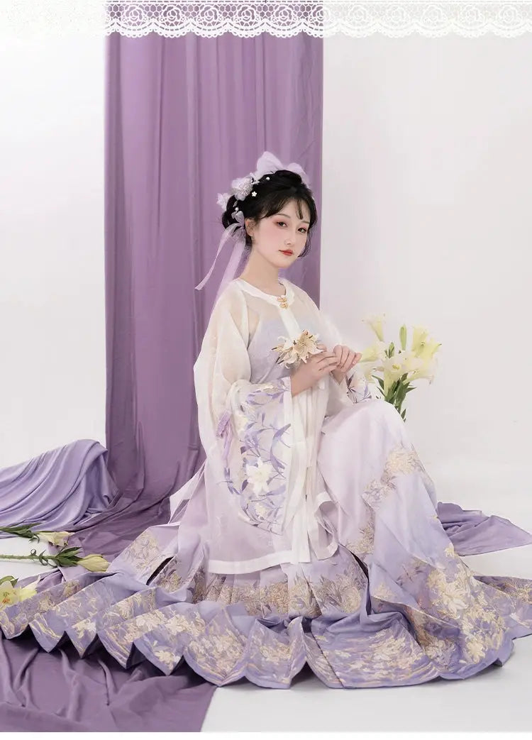 [Lirio de Niebla de Montaña] Vestido de Caballo con Maquillaje de Imitación de Flor, Cuello Redondo, Traje Ming Hanfu para Mujer
