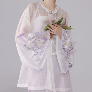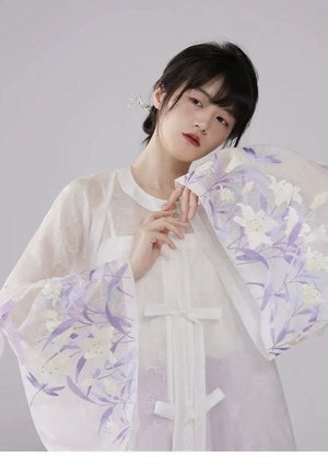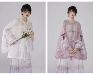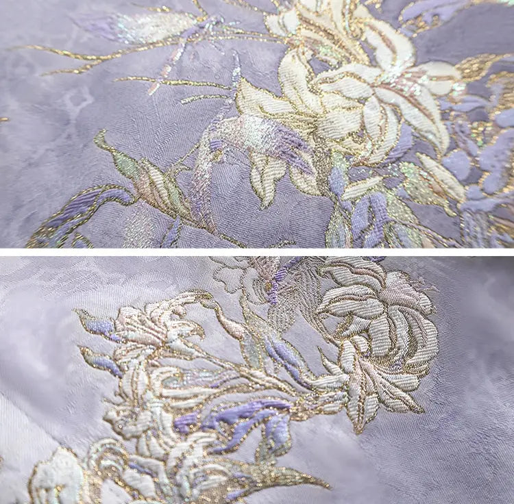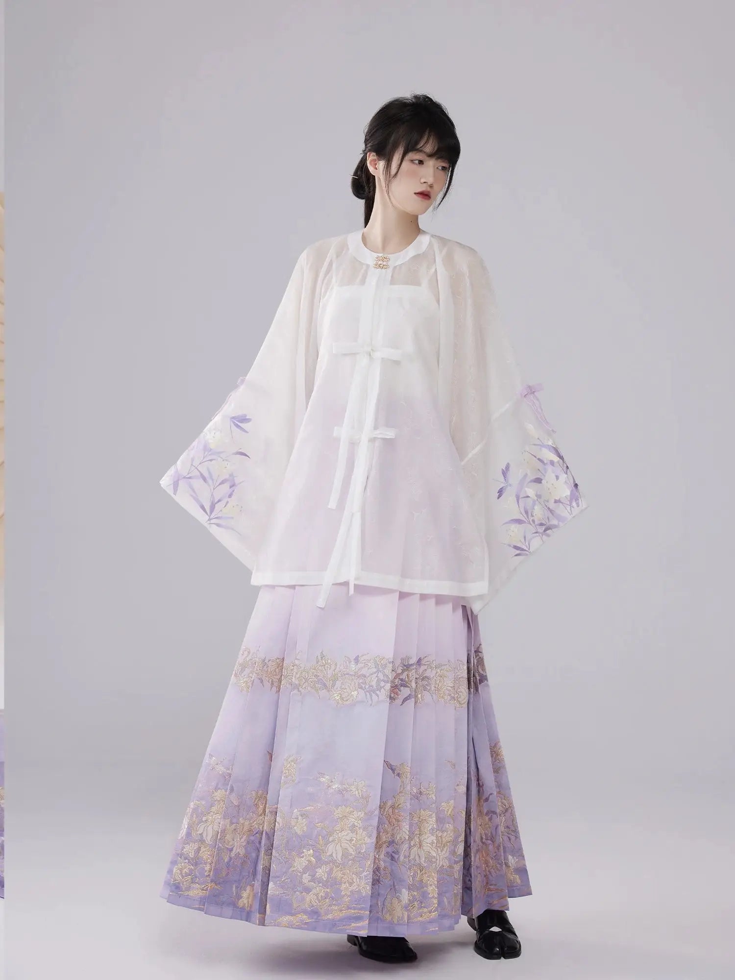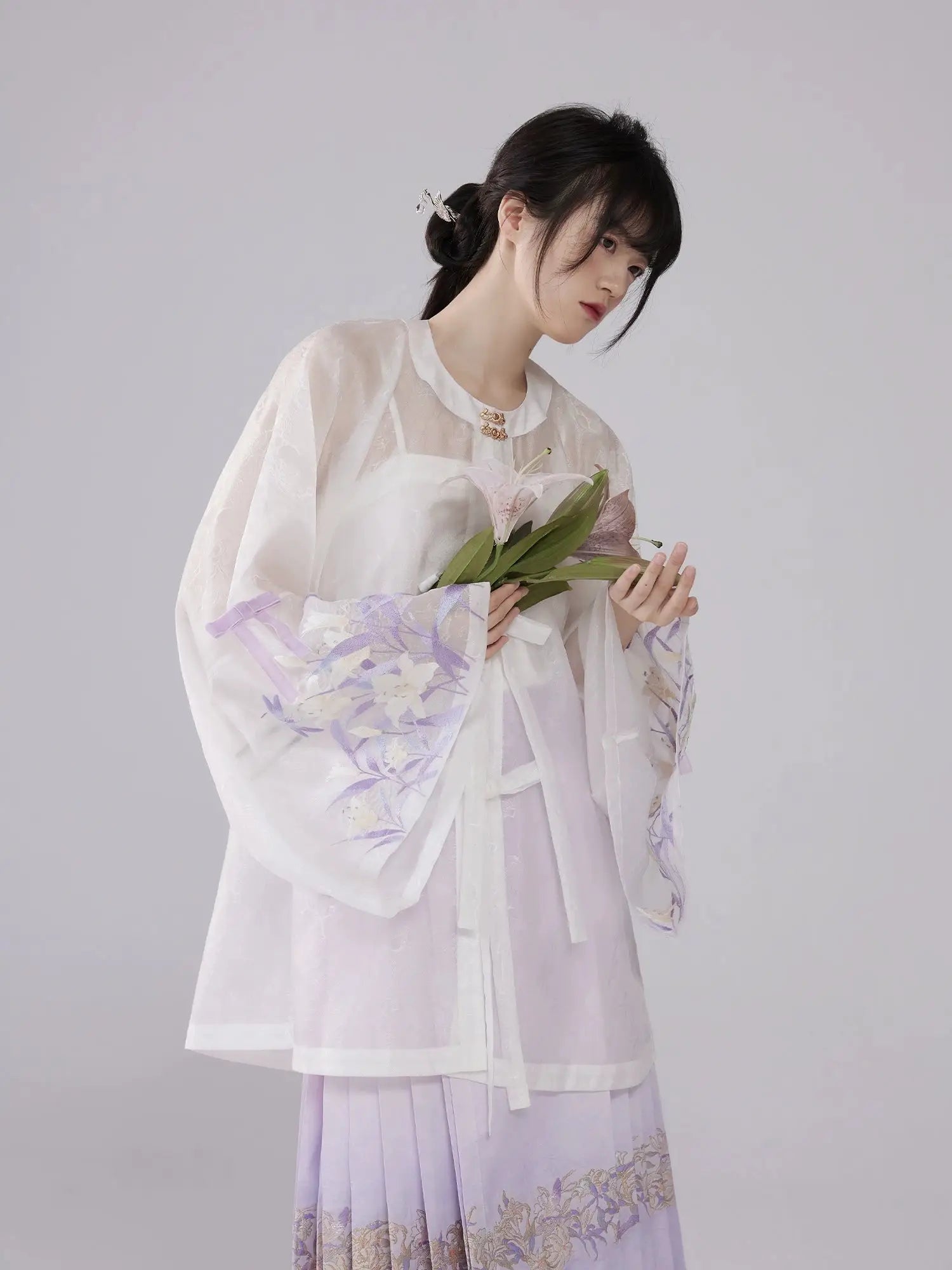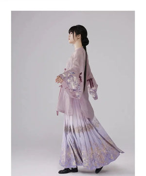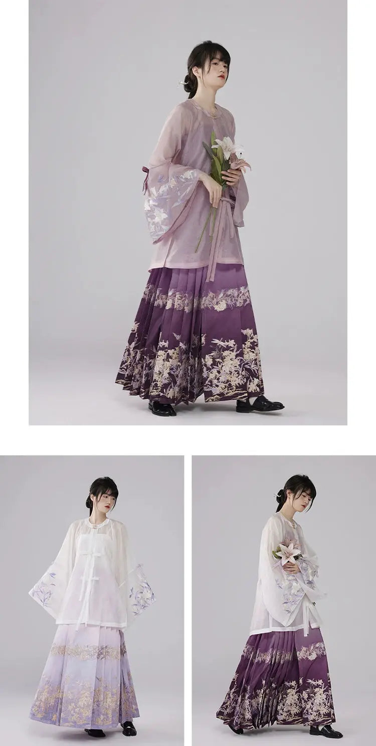 [Lirio de Niebla de Montaña] Vestido de Caballo con Maquillaje de Imitación de Flor, Cuello Redondo, Traje Ming Hanfu para Mujer