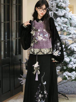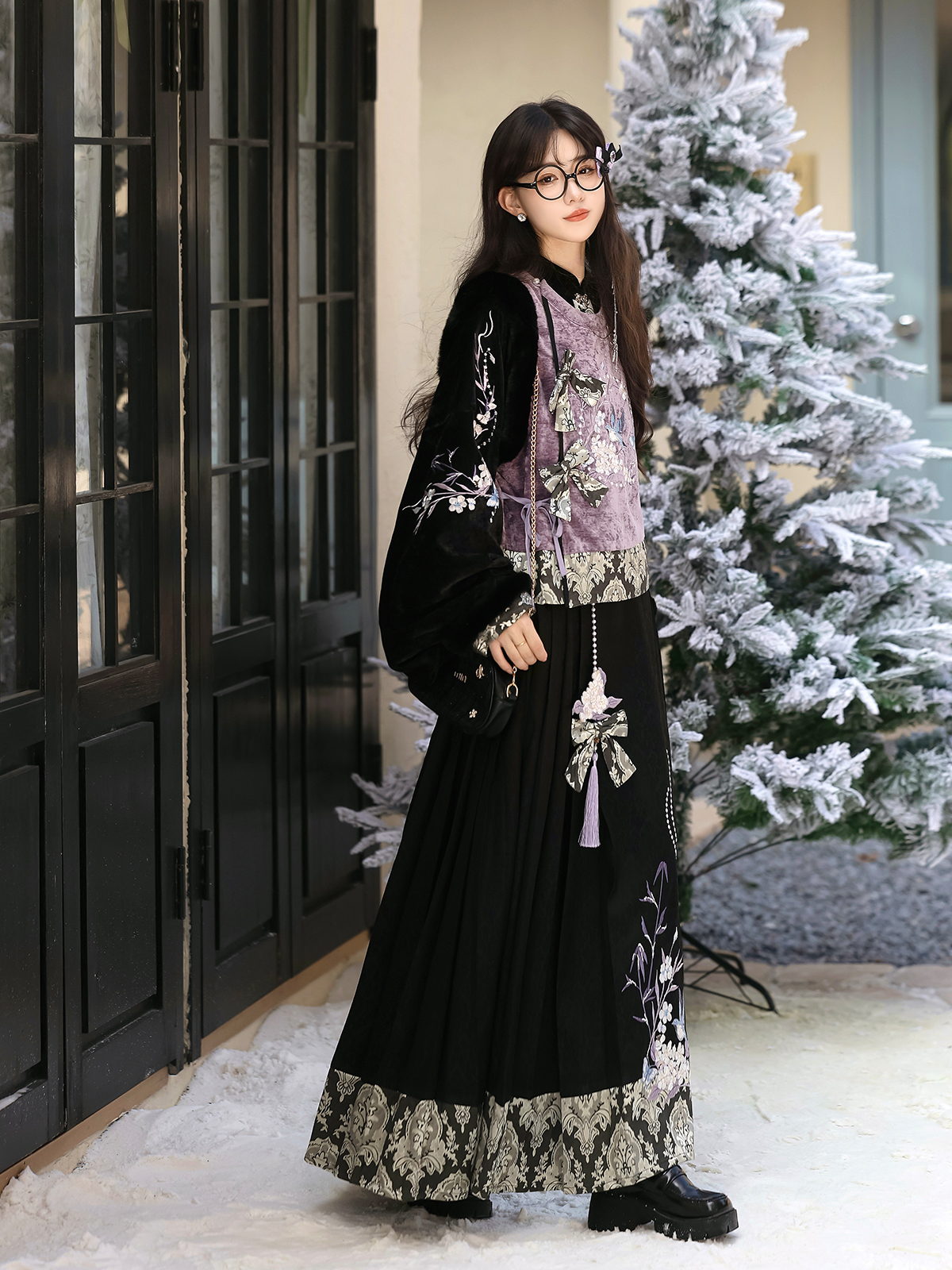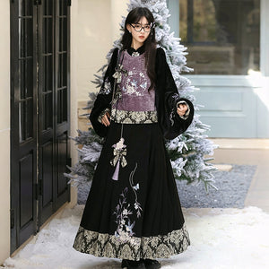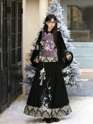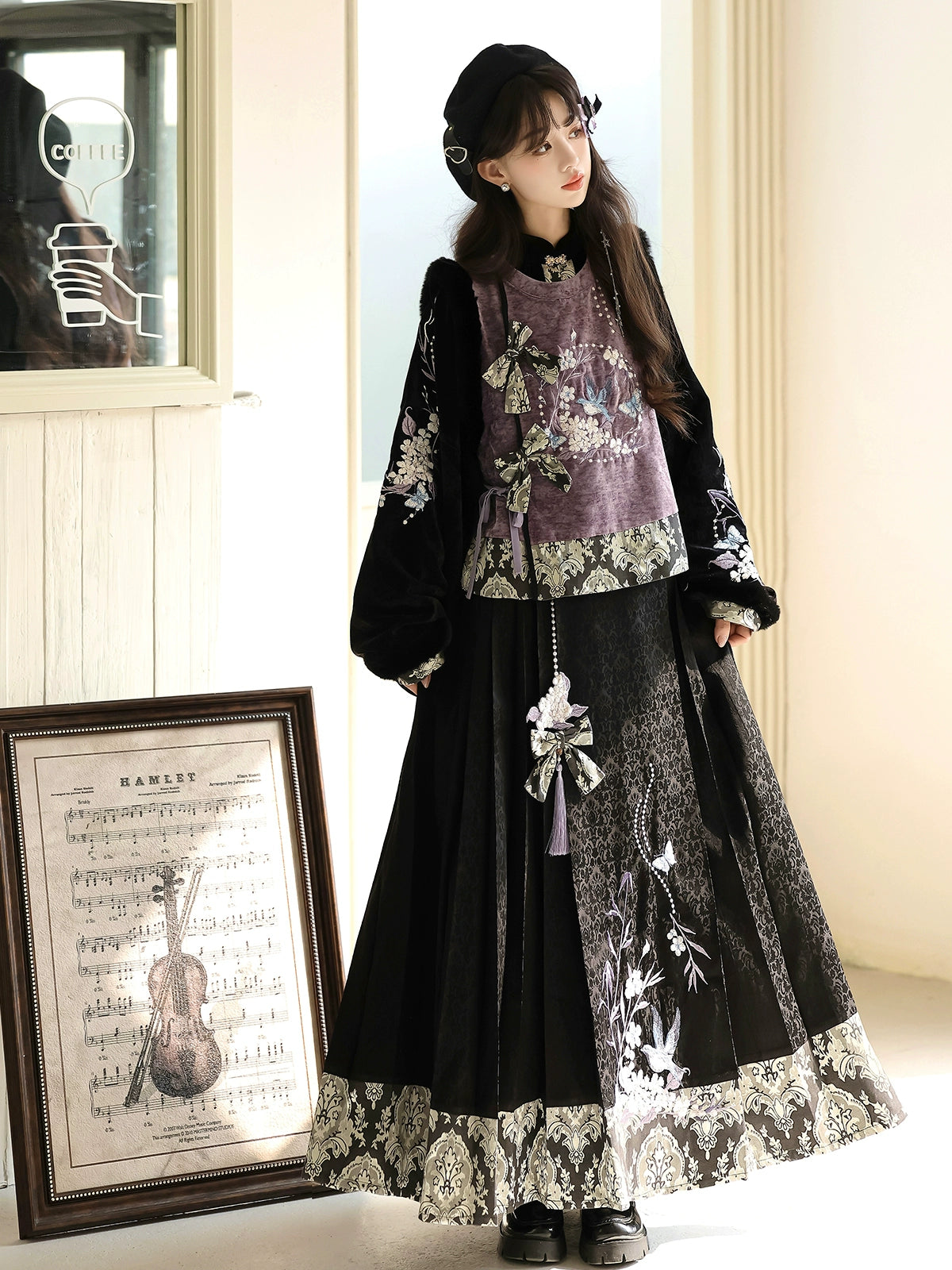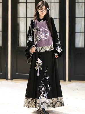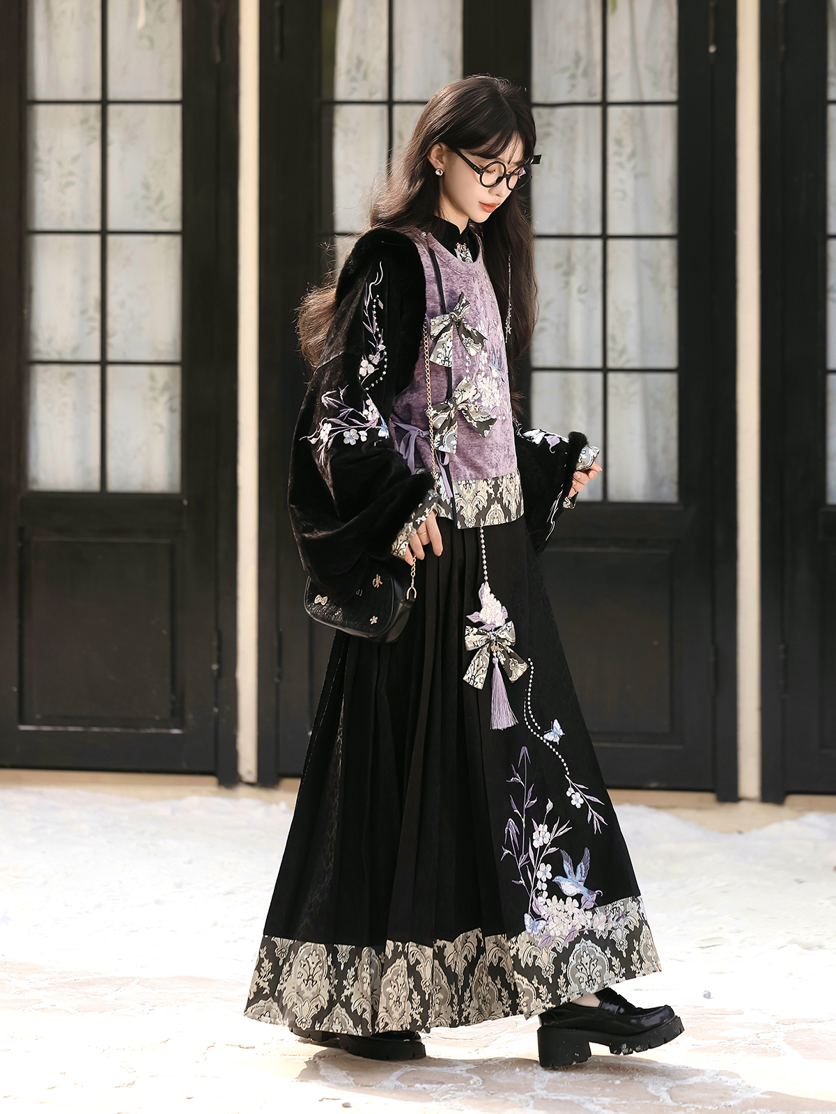 “Swallow’s Return” – Modern Hanfu Layered Vest & Skirt Set | Autumn-Winter Everyday Chinese Style