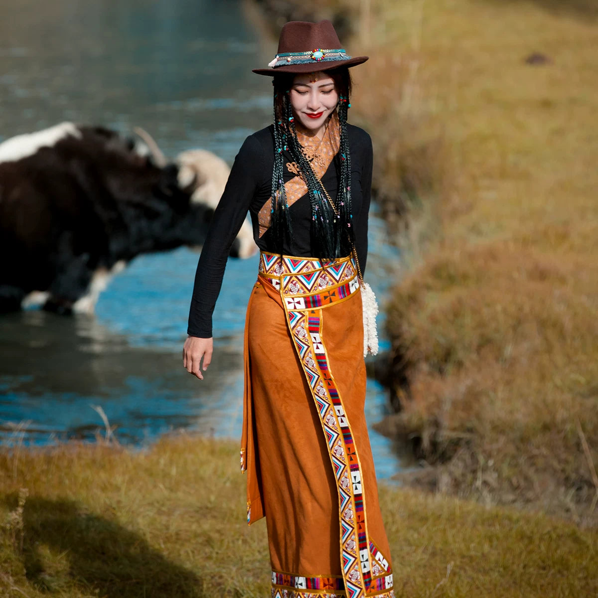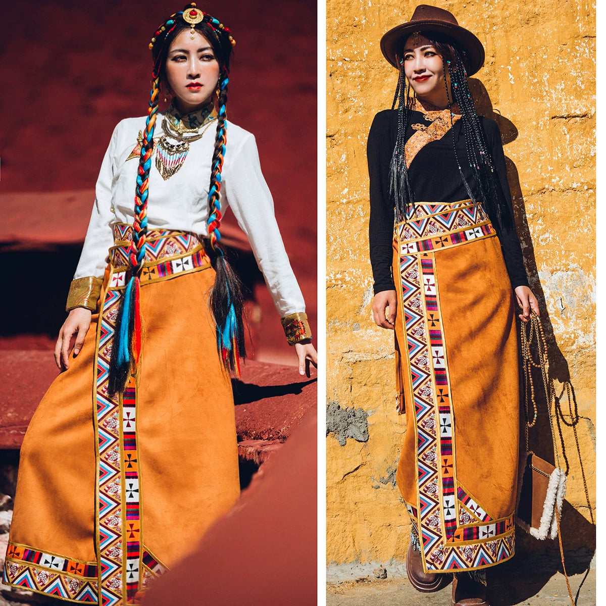 - Wrap Skirt Design: Traditional Tibetan strap skirt with adjustable fit
