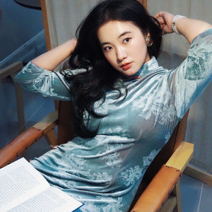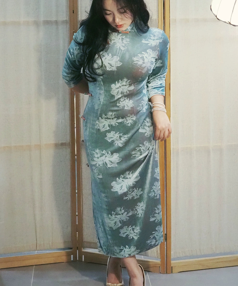 Velvet Elegance – New Chinese Qipao Dress | Autumn/Winter Curve-Flattering Fit