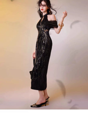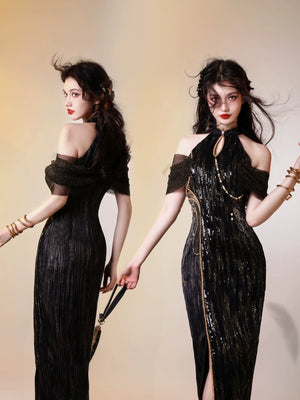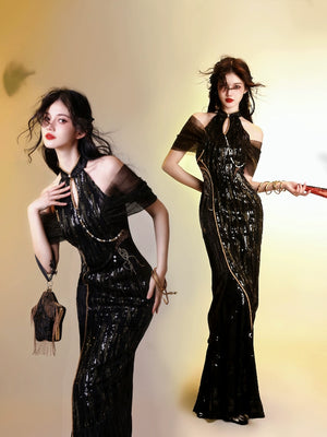 Aries Goldflow – Textured Satin Mermaid Qipao Dress from the Zodiac Collection