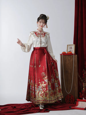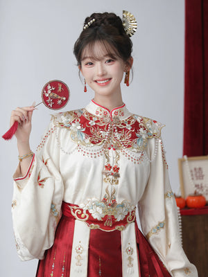 [Auspicious Union] Traditional Red Hanfu Horse Dress for Wedding Toast & Lunar New Year