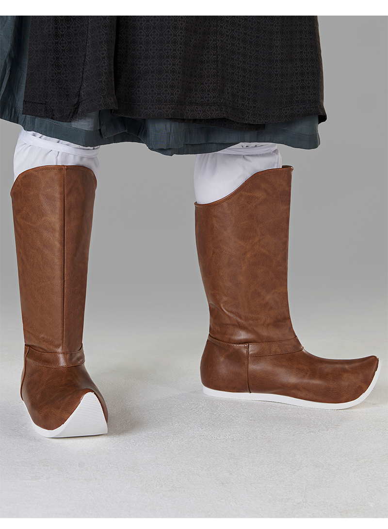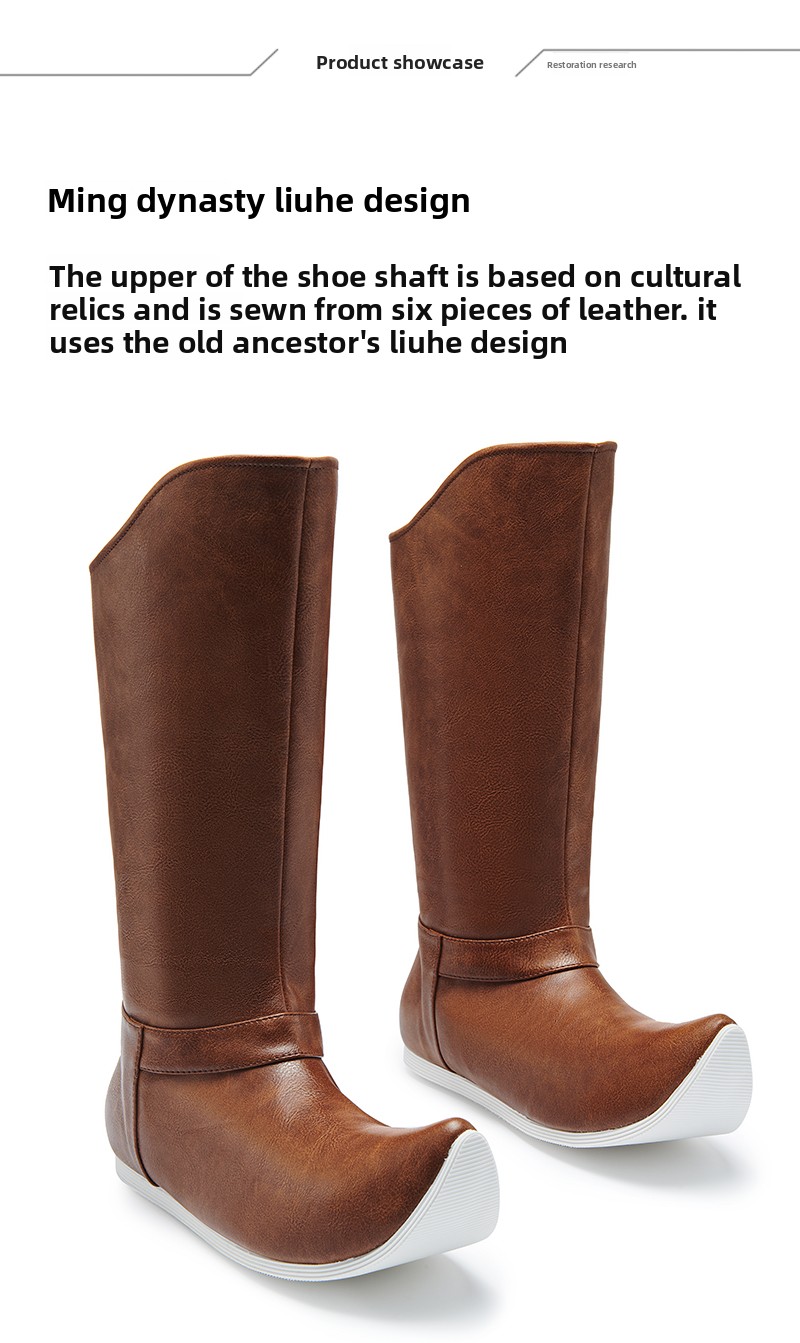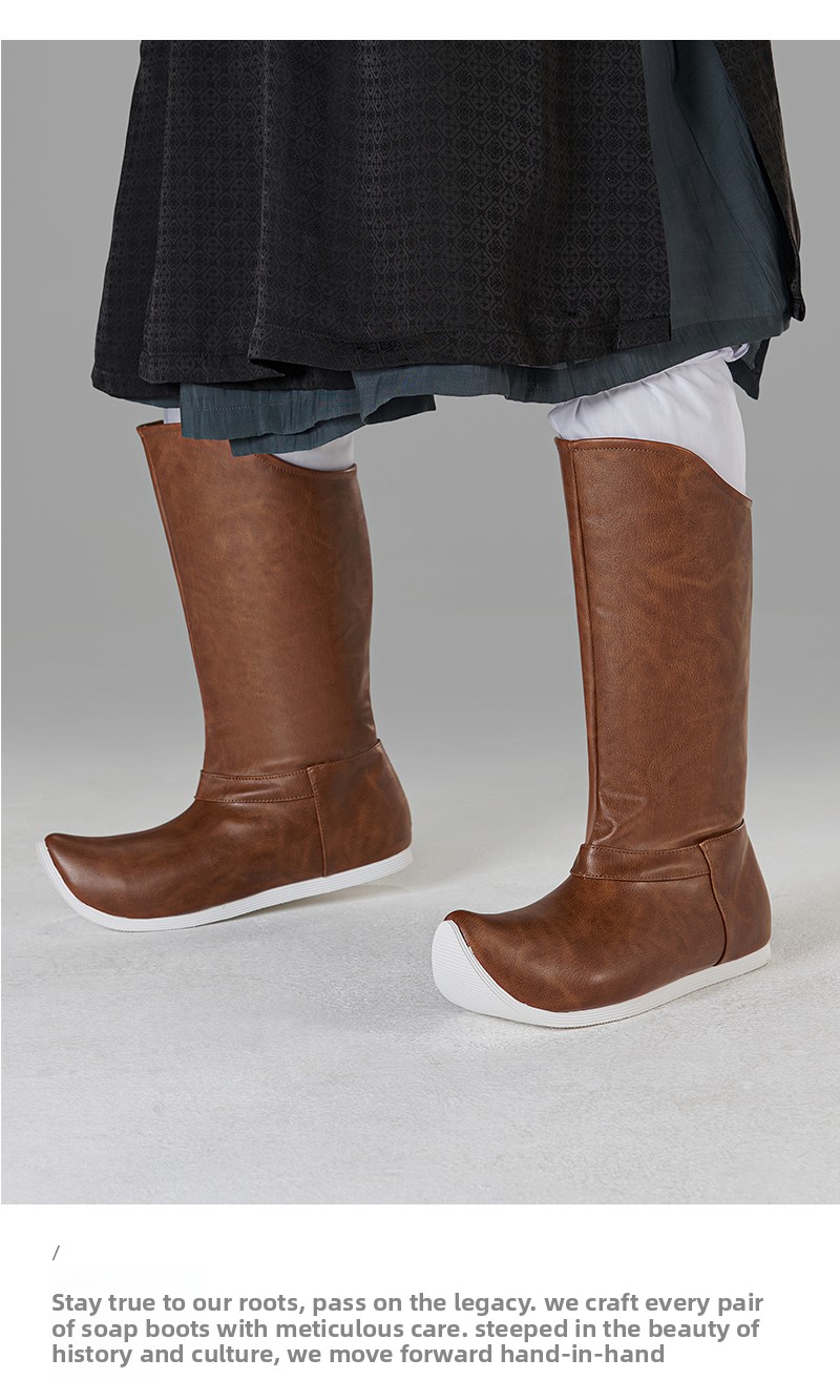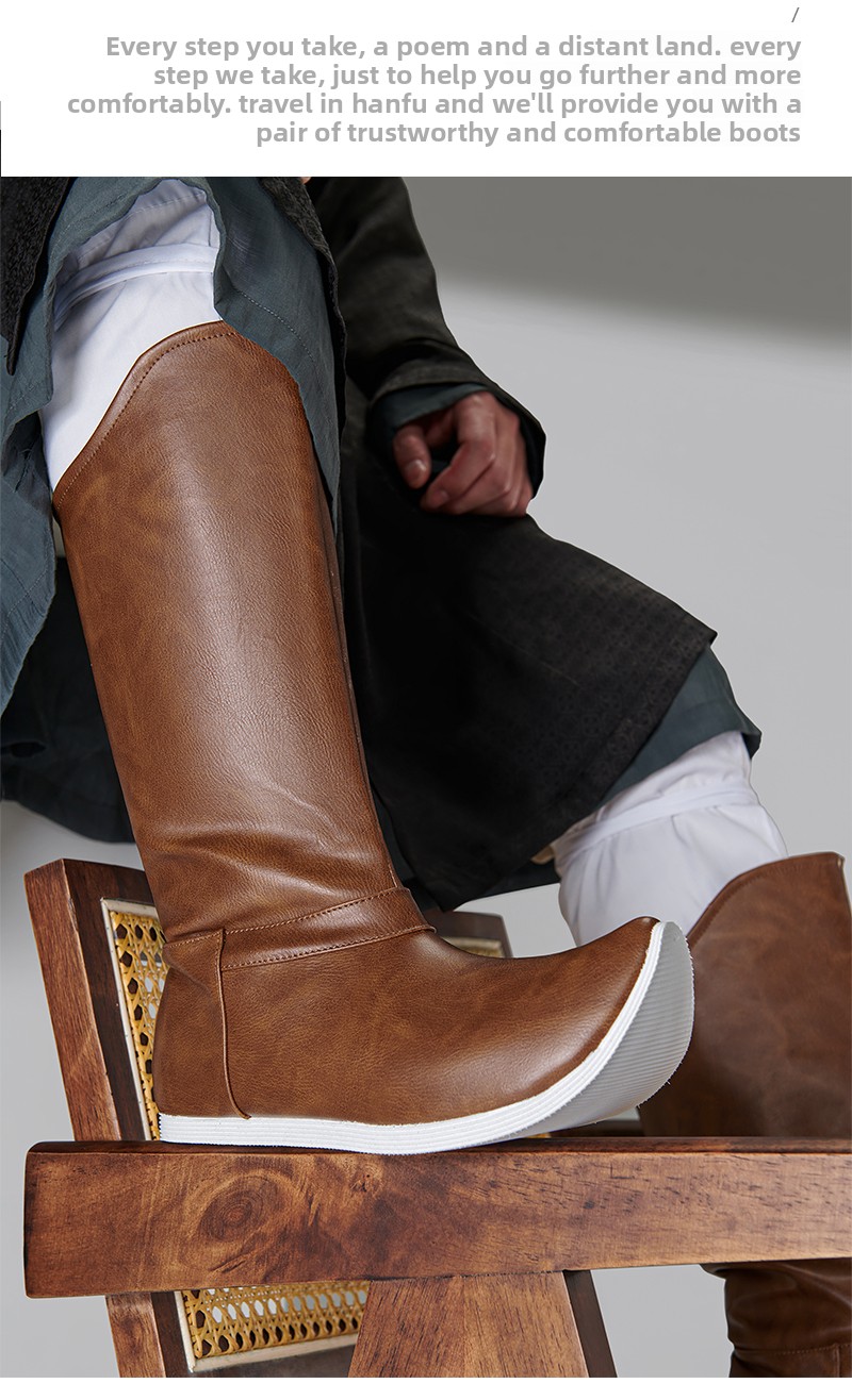 Brown Leather Hanfu Boots – Waterproof Traditional Men's Shoes | Ming & Song Dynasty Inspired Pointed-Toe Design