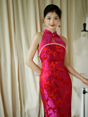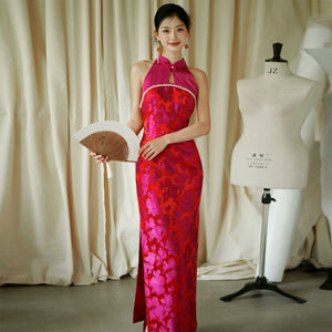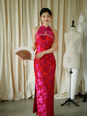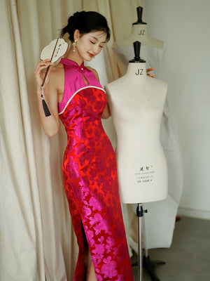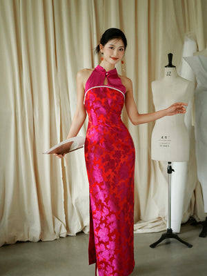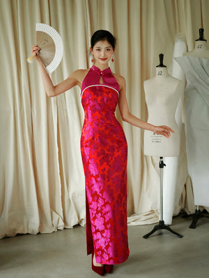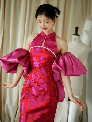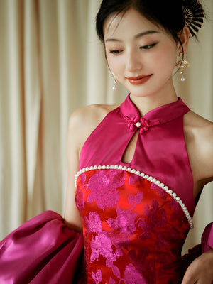 "Chuni" dragon fruit color jacquard cheongsam bride