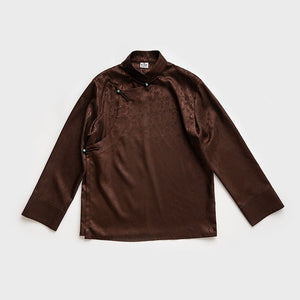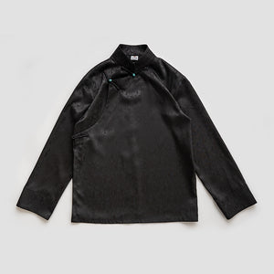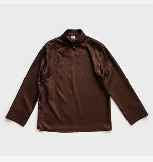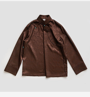 Contemporary Tibetan Shirt – Acetate Jacquard Stand Collar | Cultural Fusion Top