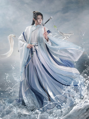 [Eight Immortals Crossing the Sea] Song-made Hanfu men' hanfu blue and white