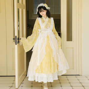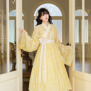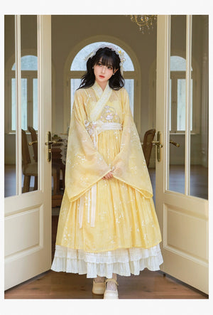 Enamel Elegance – Modern Hanfu Women's Autumn Set | Ming-Style Tieli with Sheer Overlay Skirt in Tencel