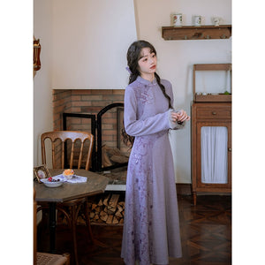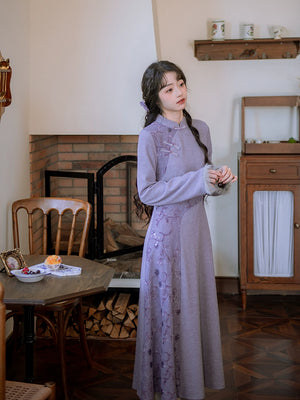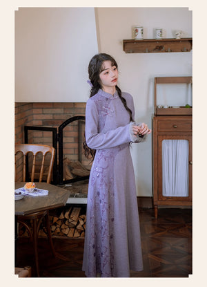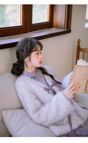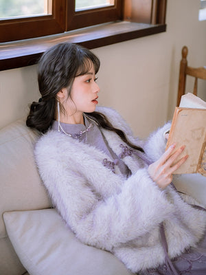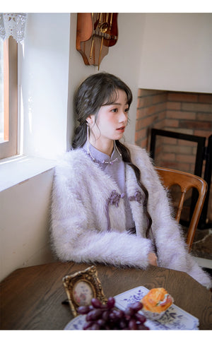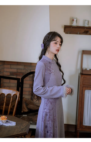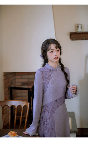 ''Falling Grace" Lace Qipao Cheongsam Dress & Faux Fur Jacket – Winter Collection