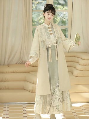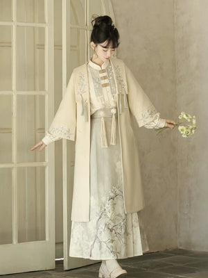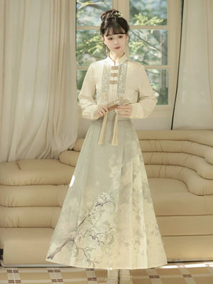 The Fangye Old Dream collection embodies a nostalgic elegance that bridges traditional Chinese aesthetics with modern wearability. This 3-piece set features premium fabrics carefully selected for both beauty and comfort - from the luxurious Chinese velvet outer jacket to the delicate plum blossom jacquard patterns that evoke classical Chinese gardens.