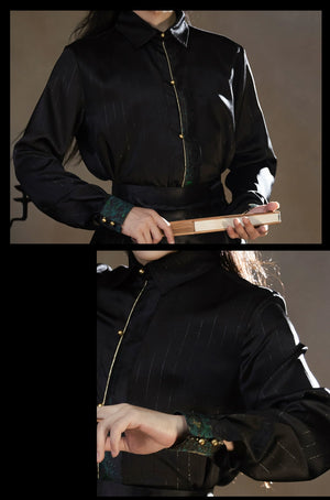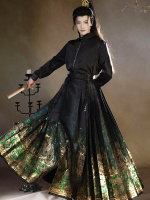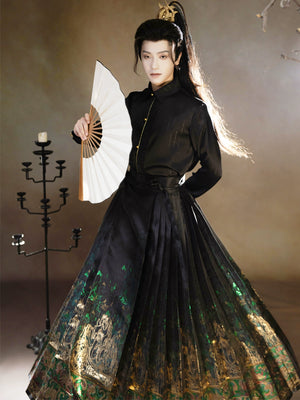 Four Divine Beasts Hanfu Set – Unisex Chinese Shirt & Brocade Horse-Face Skirt in New Style Design