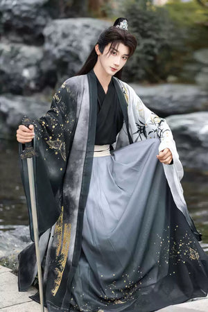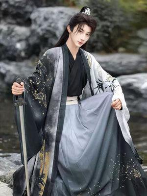 Golden Steps – Ink Bamboo & Butterfly Traditional Hanfu | Unisex Wei-Jin & Song Style Cross-Collar Wide-Sleeve Set
