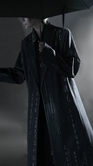 ホーム Ink Rhythm – Unisex Wool Coat Set in New Chinese Style | Calligraphy-Inspired Ink Wash Design