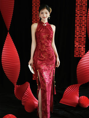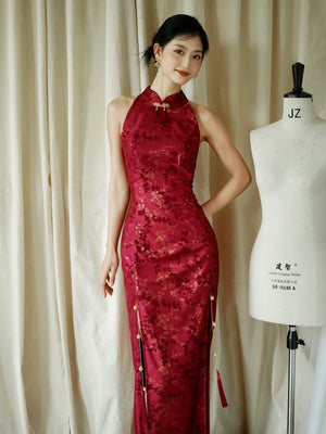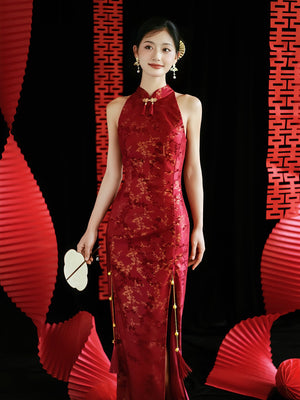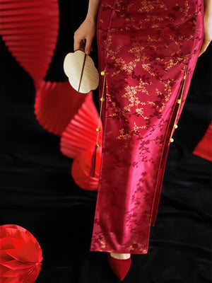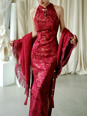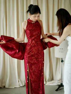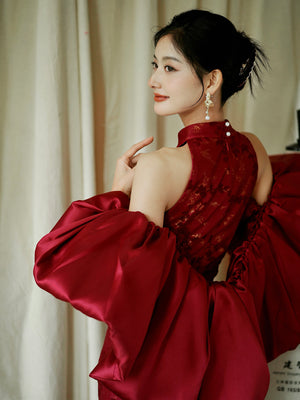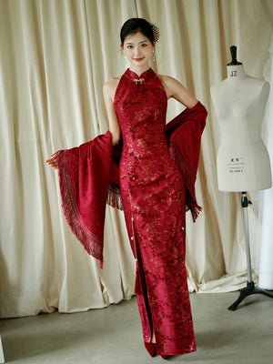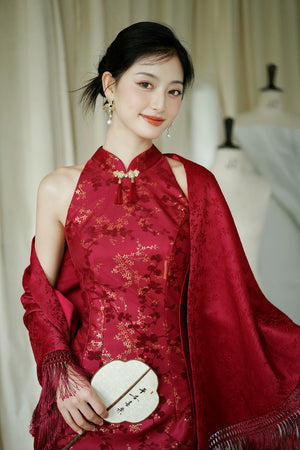 "Jubilee Bell" Red Cheongsam Shawl Bridal Toast Engagement Dress