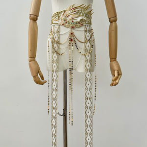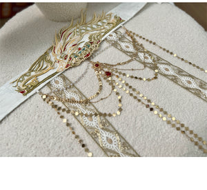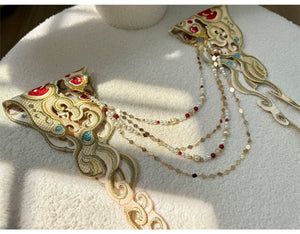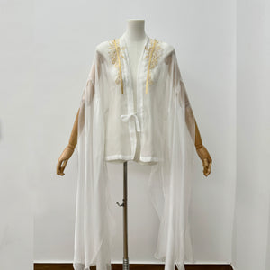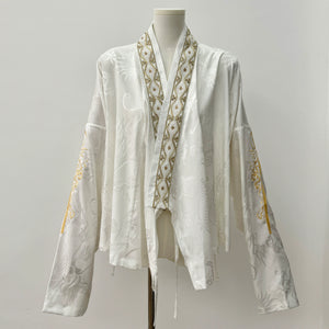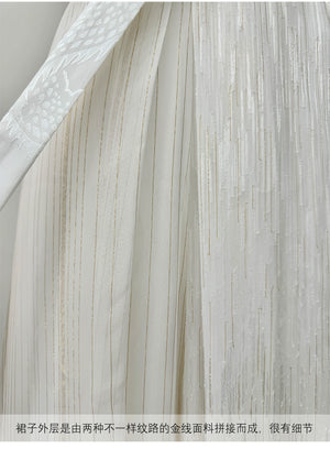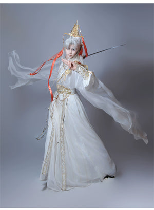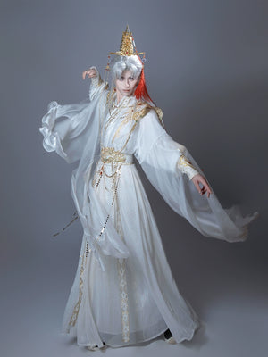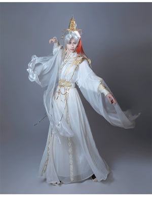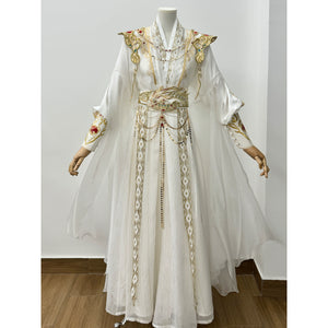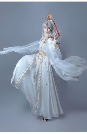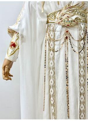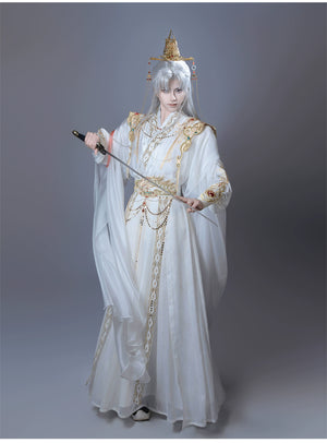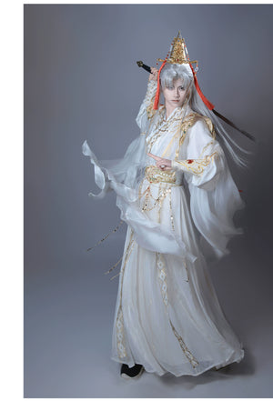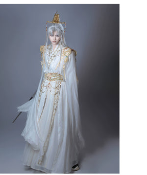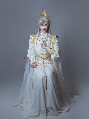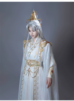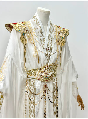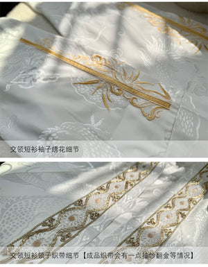【Radiance of the Dragon】 White Hanfu Ensemble with Cross-Collar, Clouded Shoulders & Embroidered Seal men Unisex