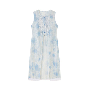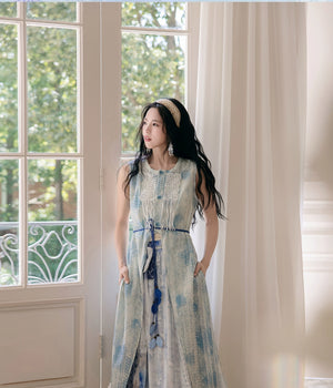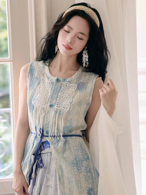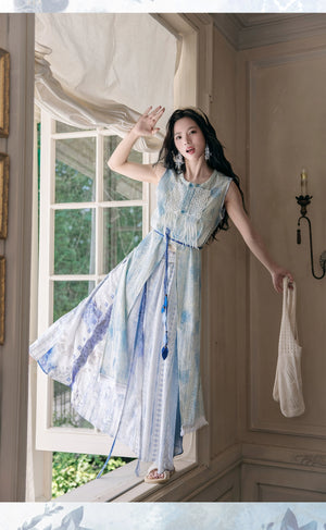 "Moran Canglan" Blue Modern Hanfu – Sleeveless Bijia Dress with Flowing Skirt & Han Elements for Spring/Summer