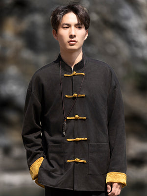 New China style can be worn on both sides, button-down top jacket Tang suit men