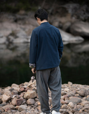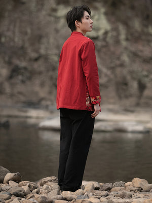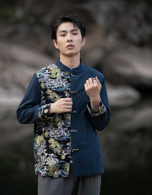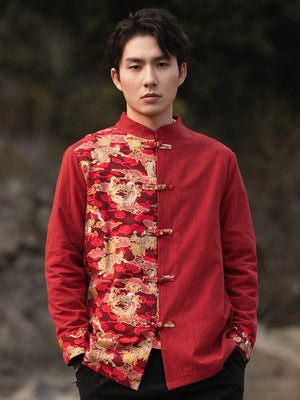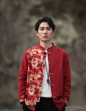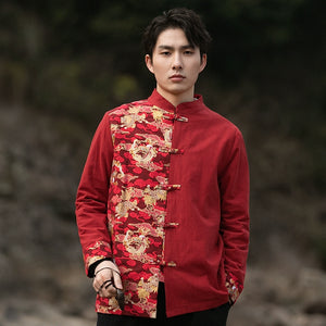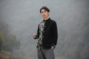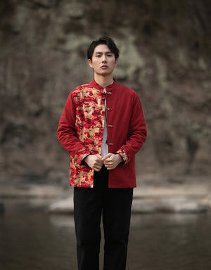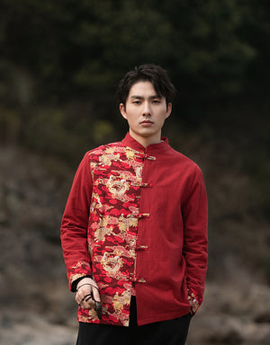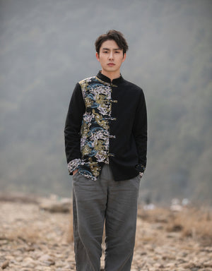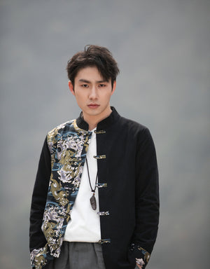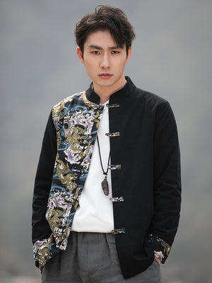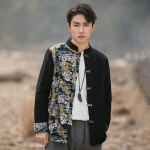 New Chinese style disc button top contrasting coat printing Tang suit men