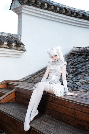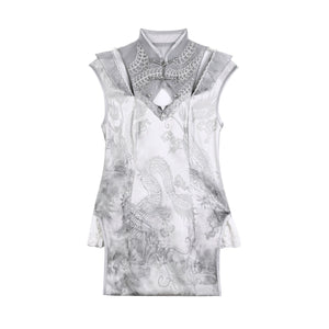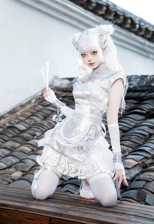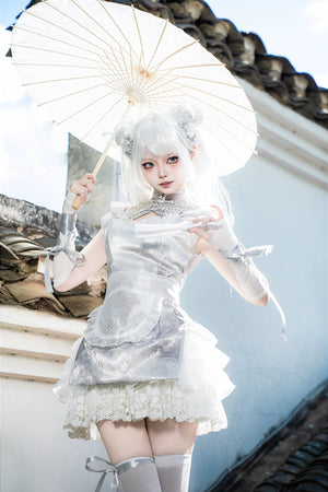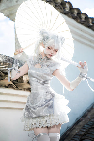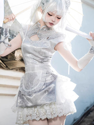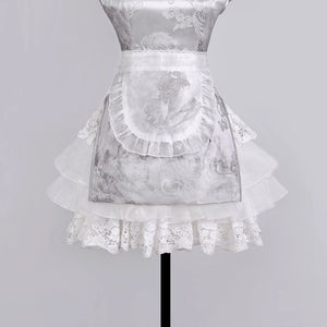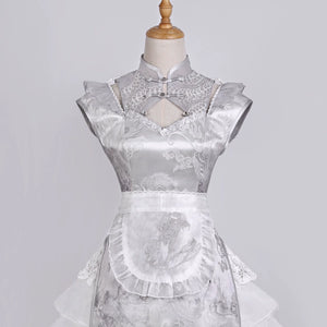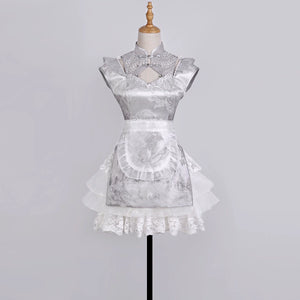 New Chinese style white Dress Cheongsam Maid Apron Short Dress Lolita
