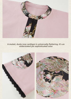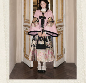 Spring Mountain Dragon – New Chinese Style Hanfu Set | Brocade Ma Mian Skirt with Embroidered Cape and Floral Gold Weave