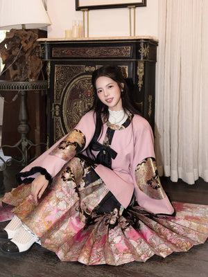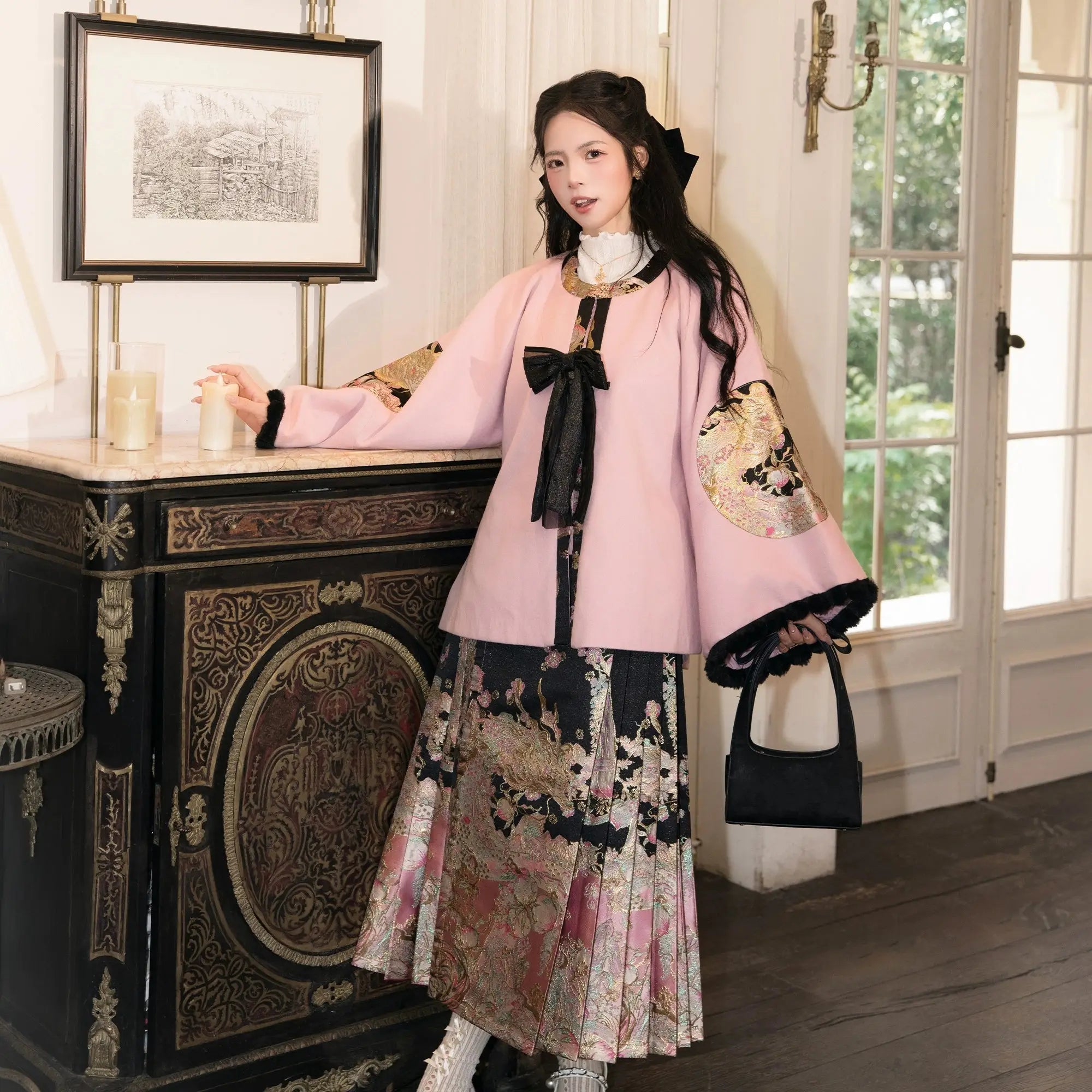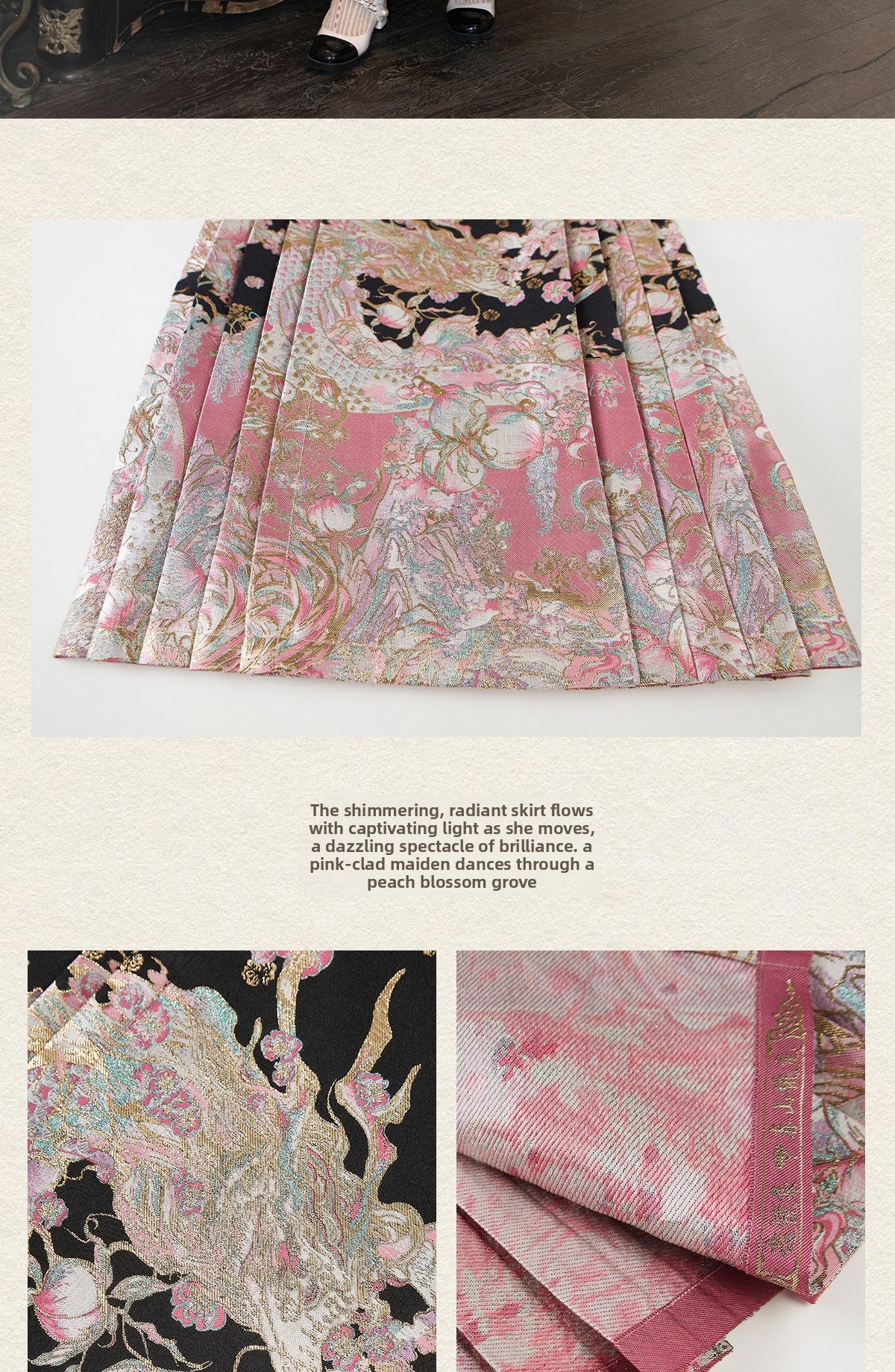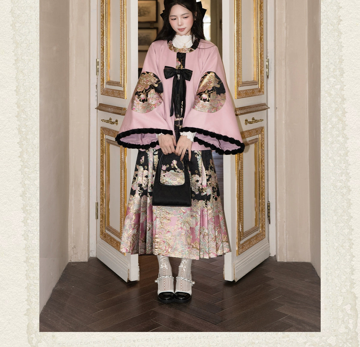 ホーム Spring Mountain Dragon – New Chinese Style Hanfu Set | Brocade Ma Mian Skirt with Embroidered Cape and Floral Gold Weave