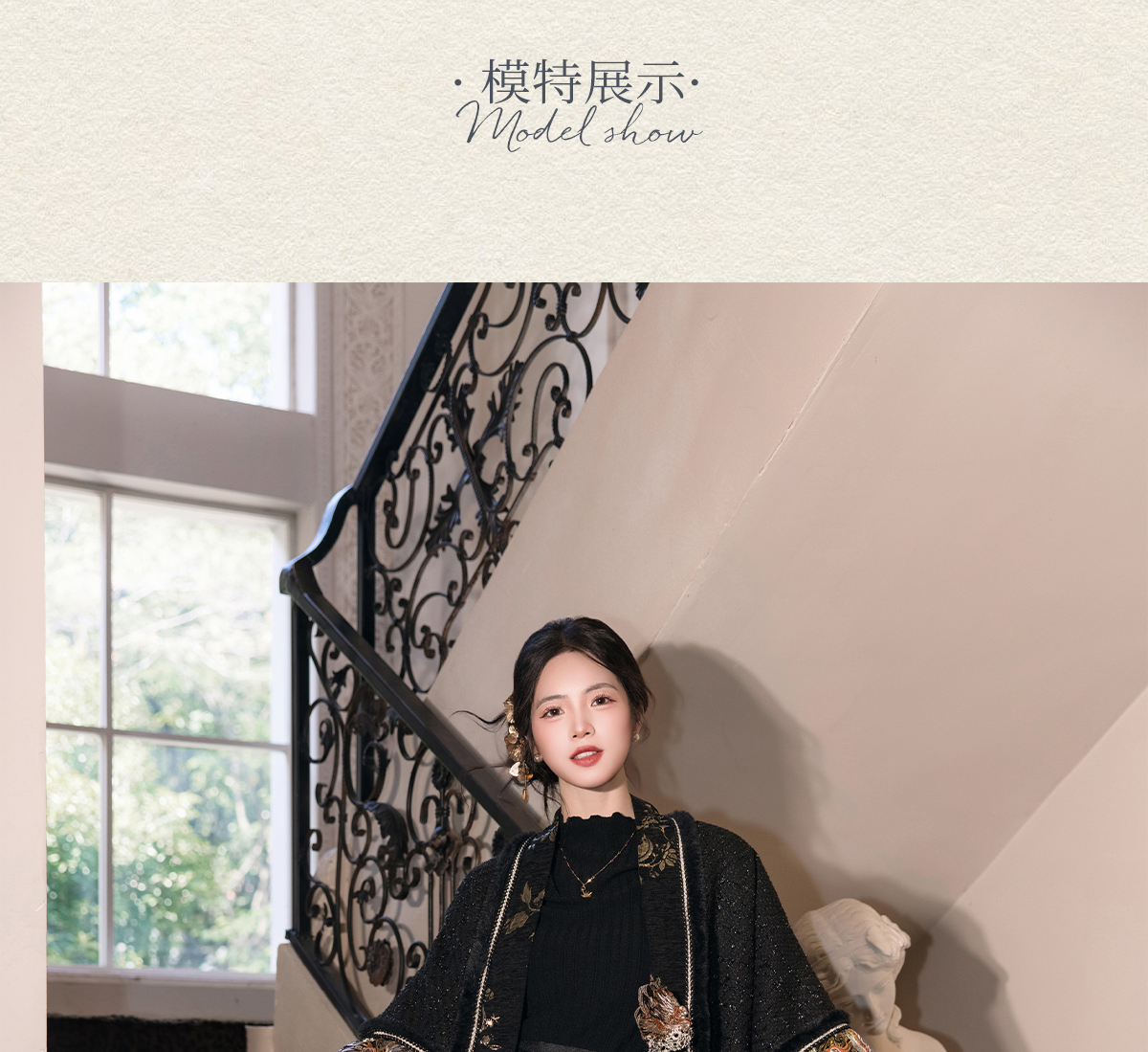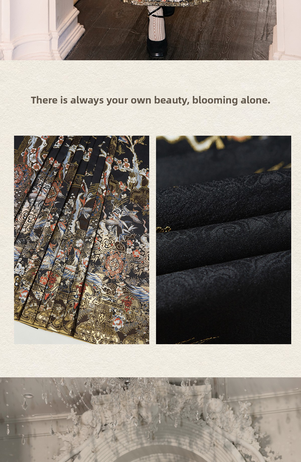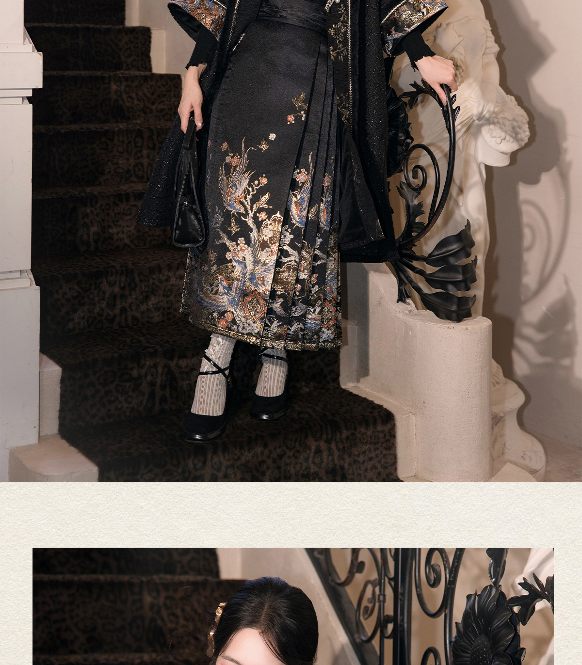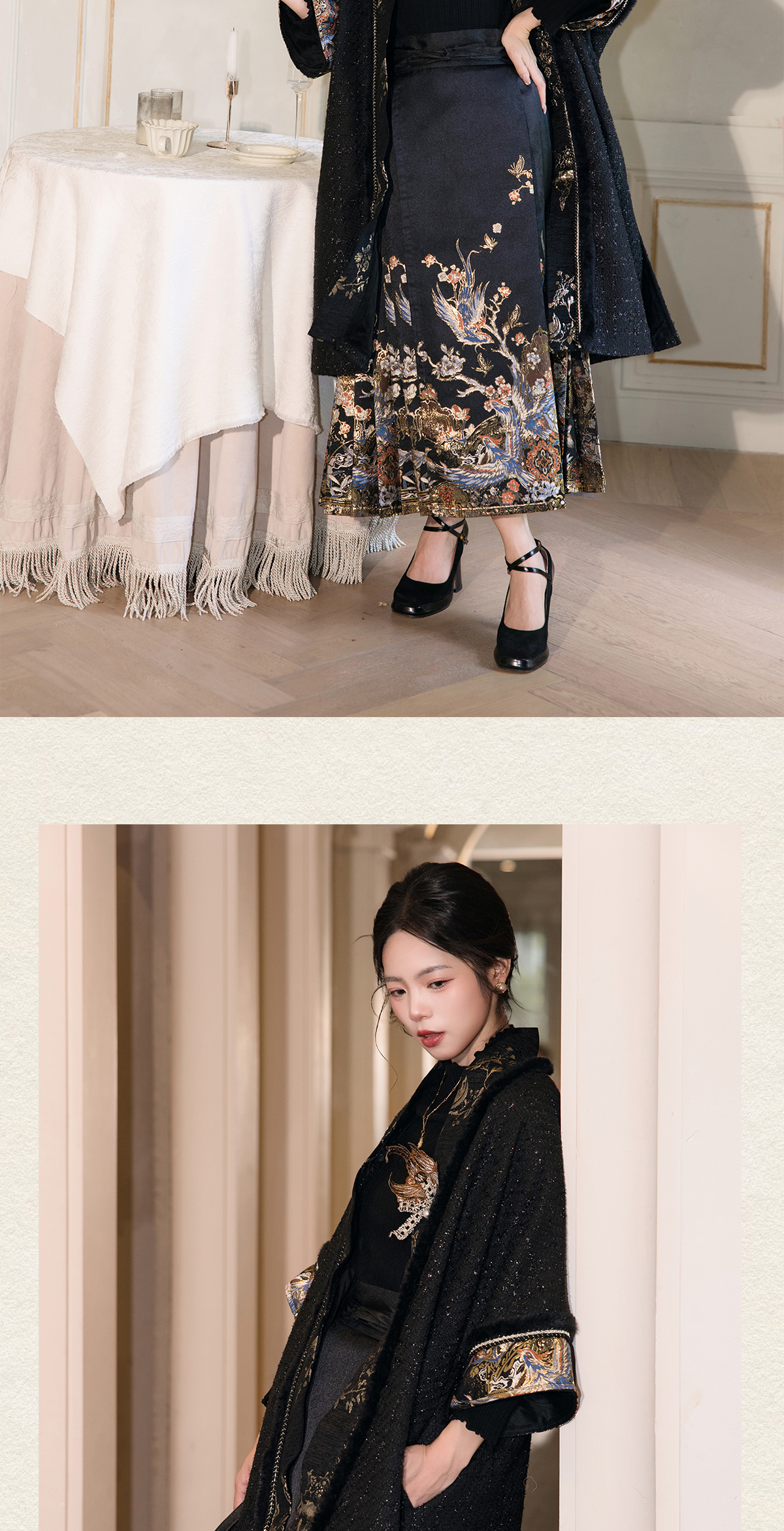 Spring Mountain Dragon – New Chinese Style Hanfu Set | Brocade Ma Mian Skirt with Embroidered Cape and Floral Gold Weave