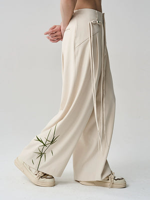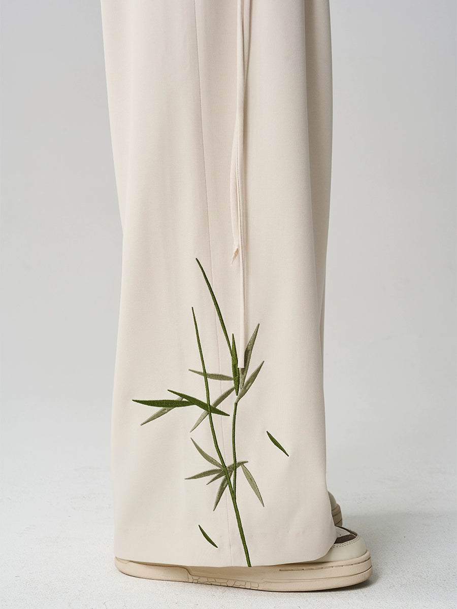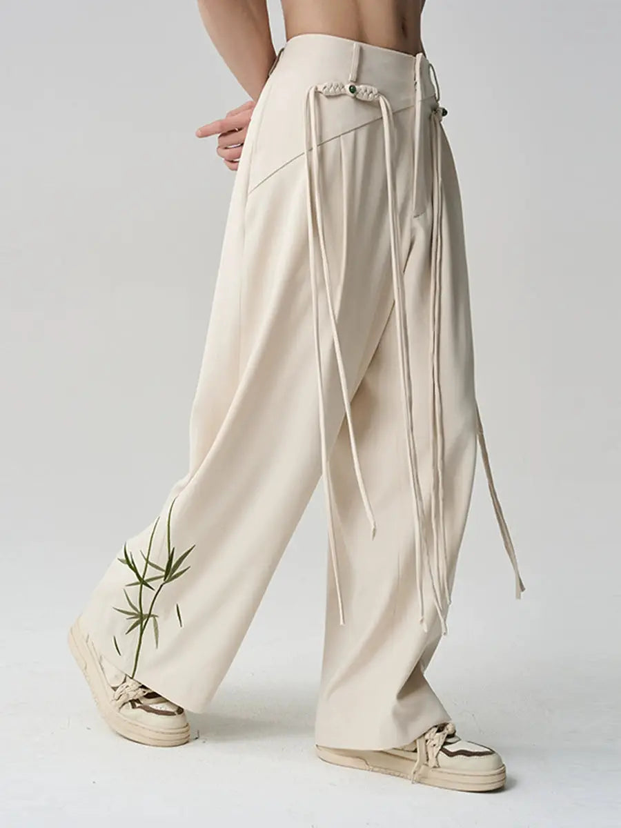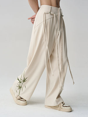 Tassel Embroidered Unisex Trousers – New Chinese Style with Knot Button Detail