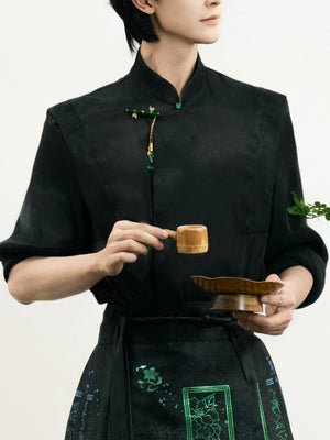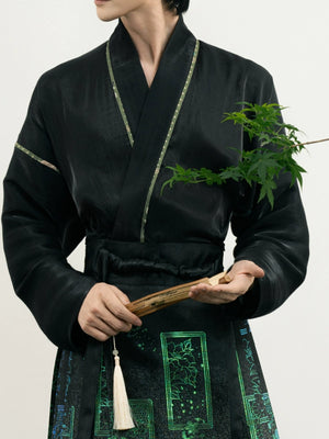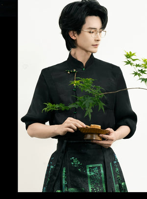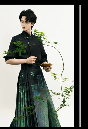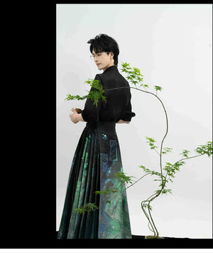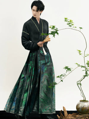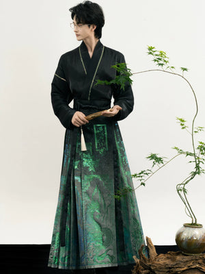 Unisex Hanfu Set – New Chinese Style Cross Jacket & Horse-Face Skirt Modern Hanfu Male