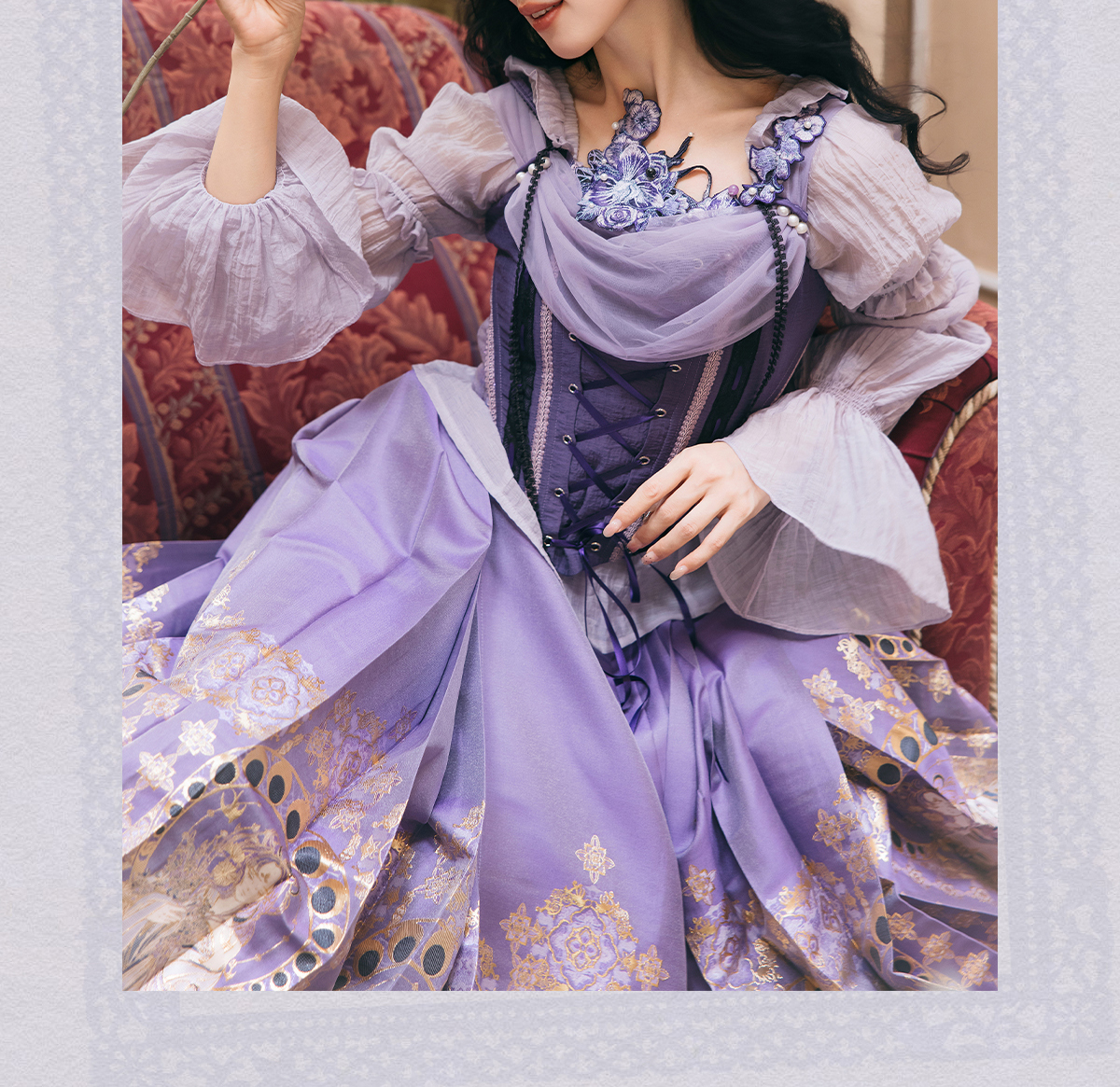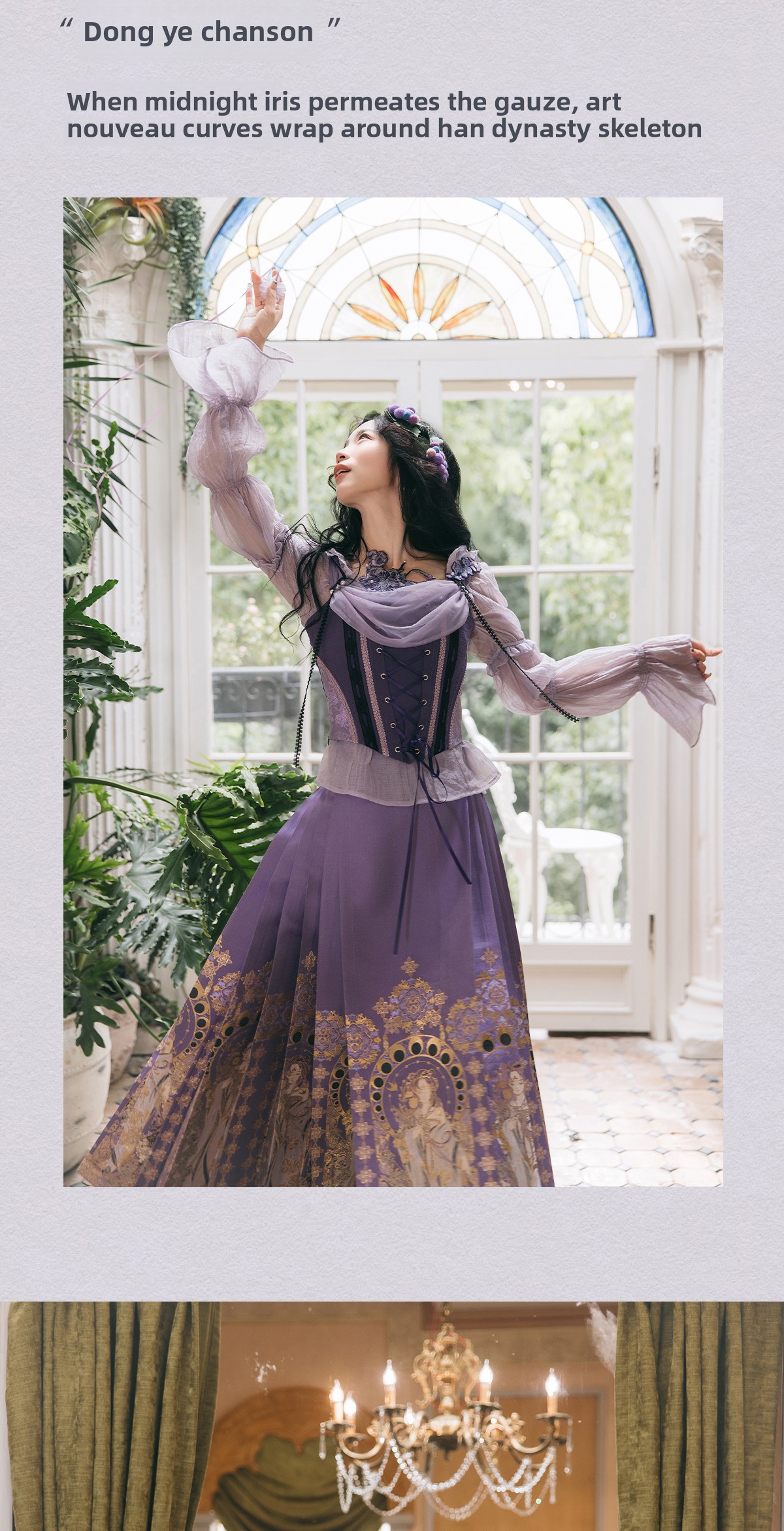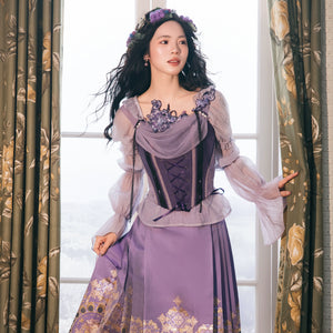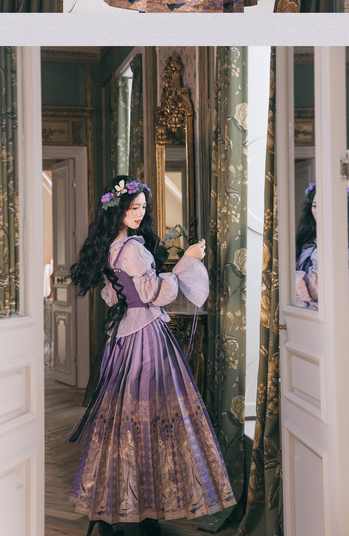 “Violet Nocturne” Brocade Hanfu Ensemble – Gold-Woven Mamian Skirt & Corset