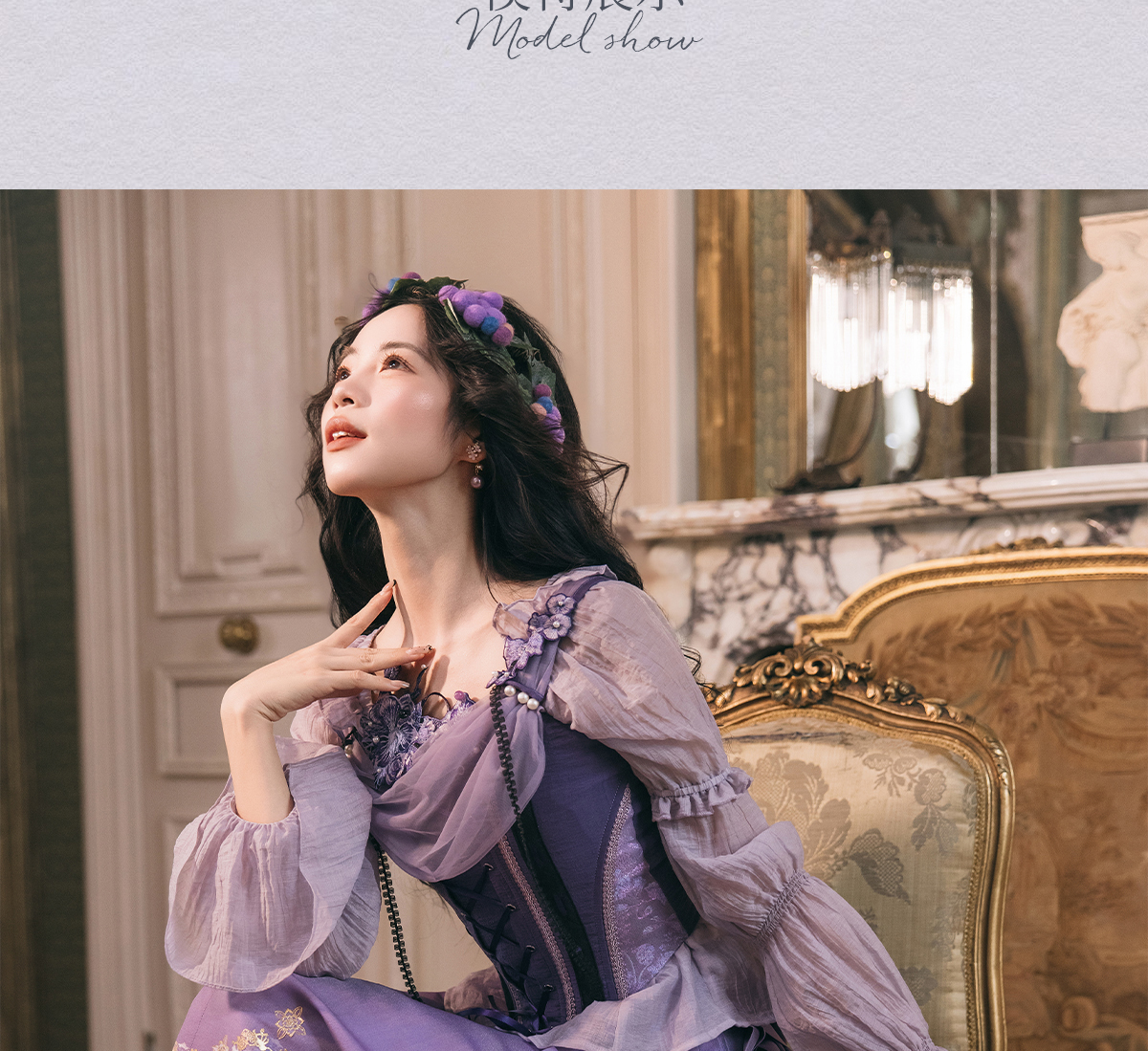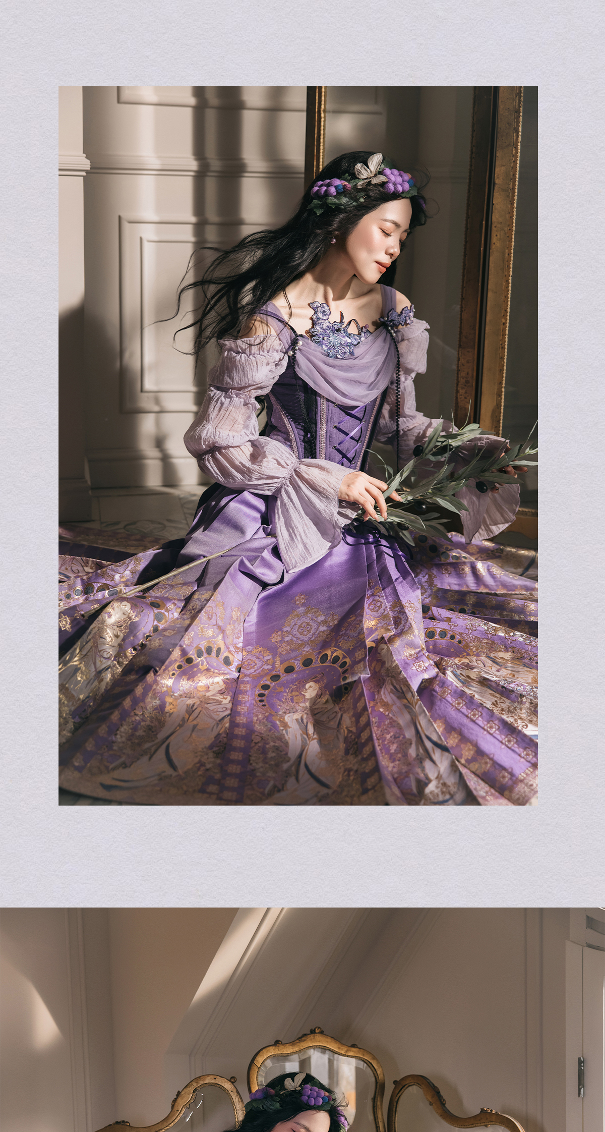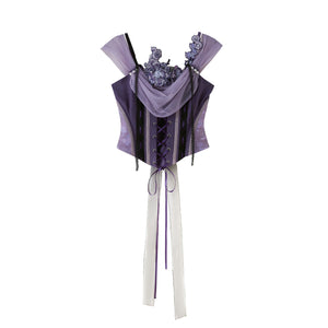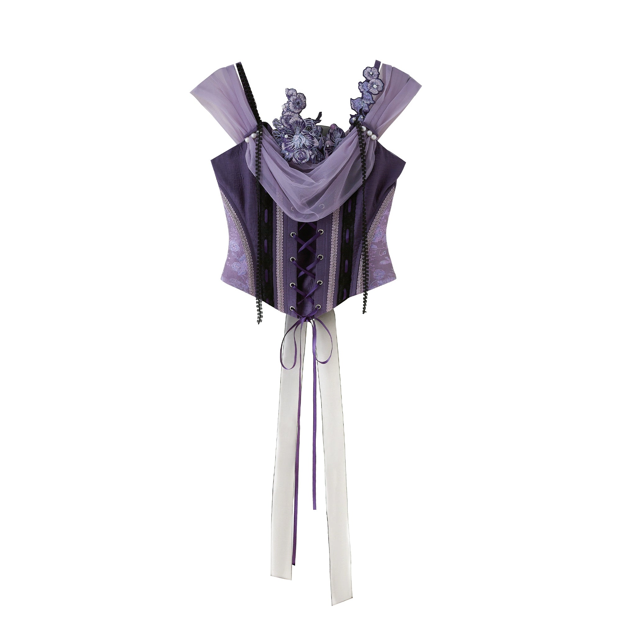“Violet Nocturne” Brocade Hanfu Ensemble – Gold-Woven Mamian Skirt & Corset