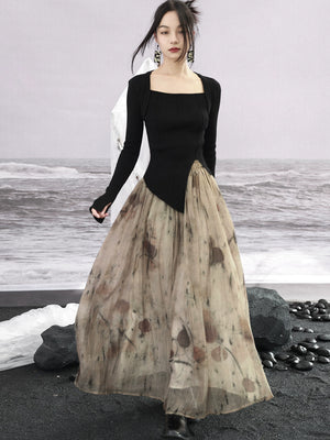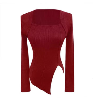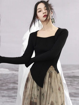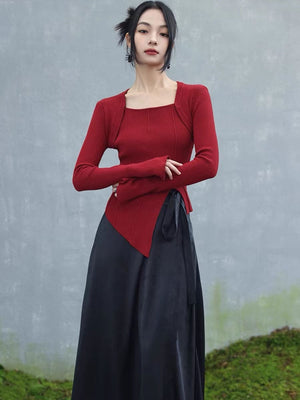 New Chinese style | suit women's early spring sweater fake two piece knitted black & red top