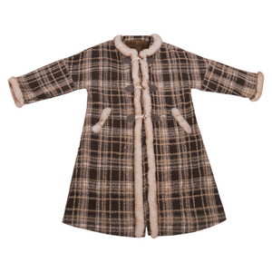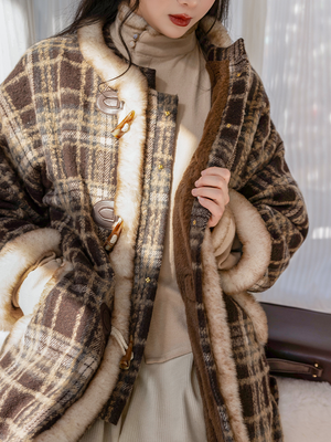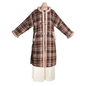 Amber Grace – Modern Hanfu Women's Autumn/Winter Set | Ming-Style Round-Collar Wool Coat with Plaid Song-Inspired Pants