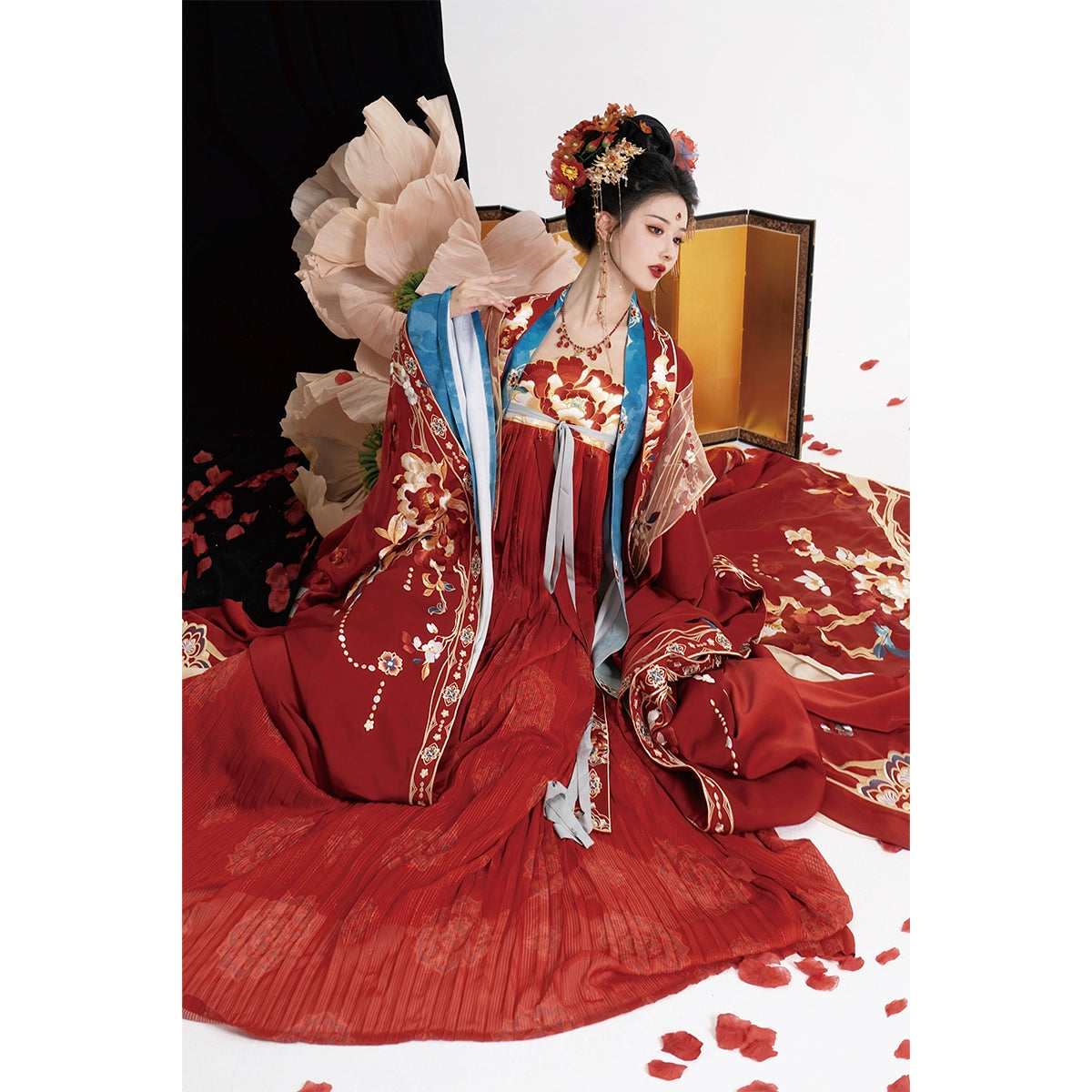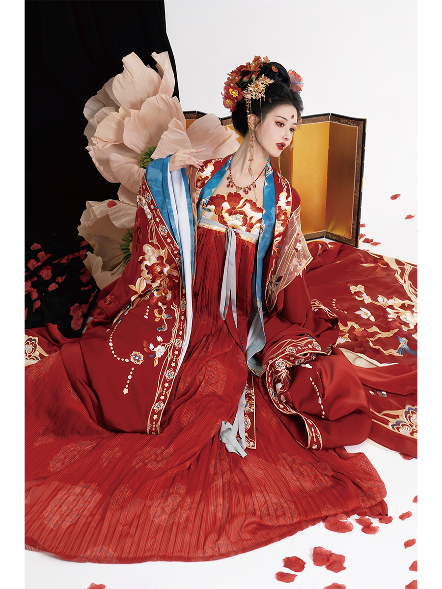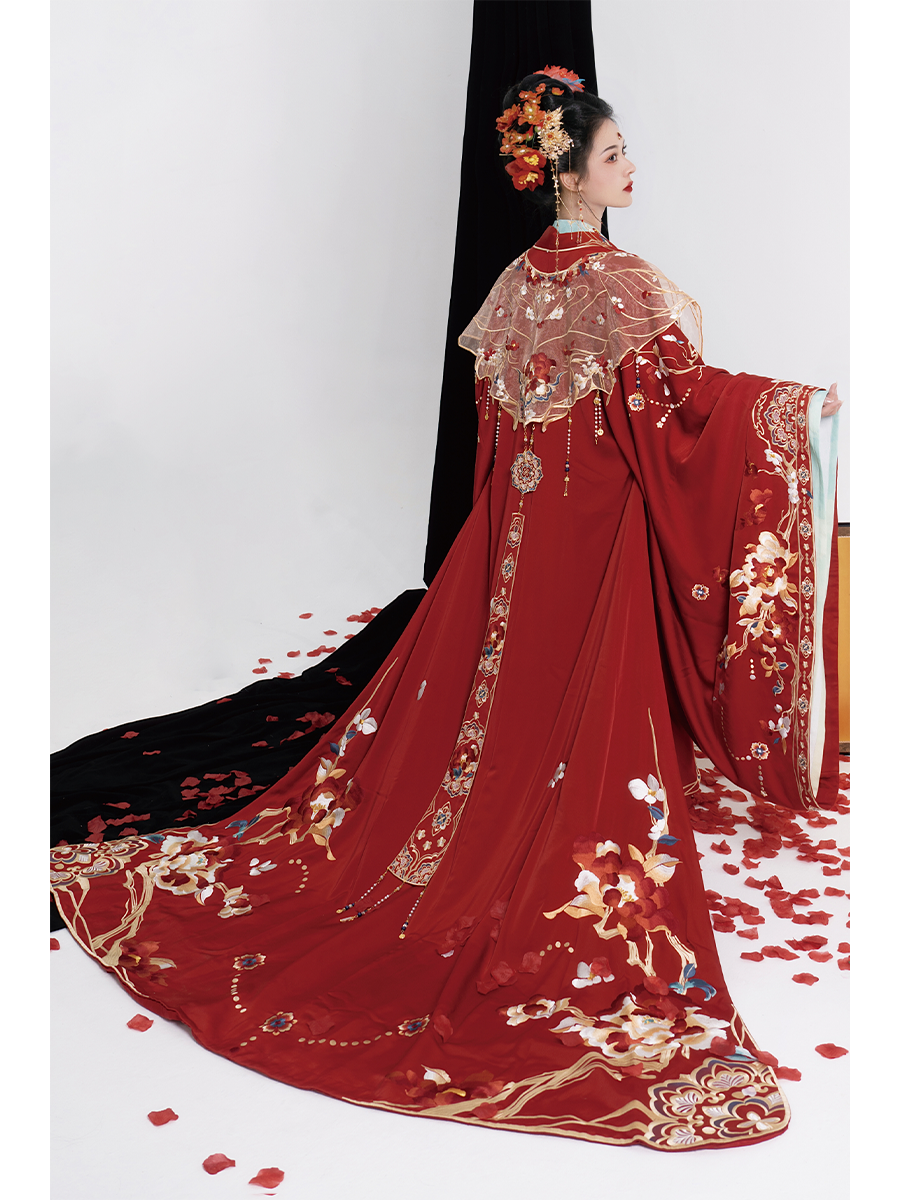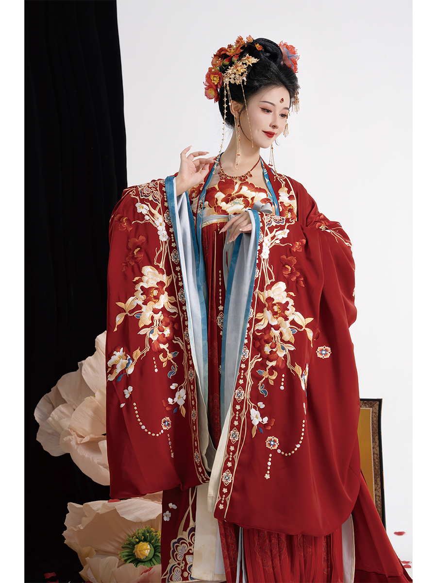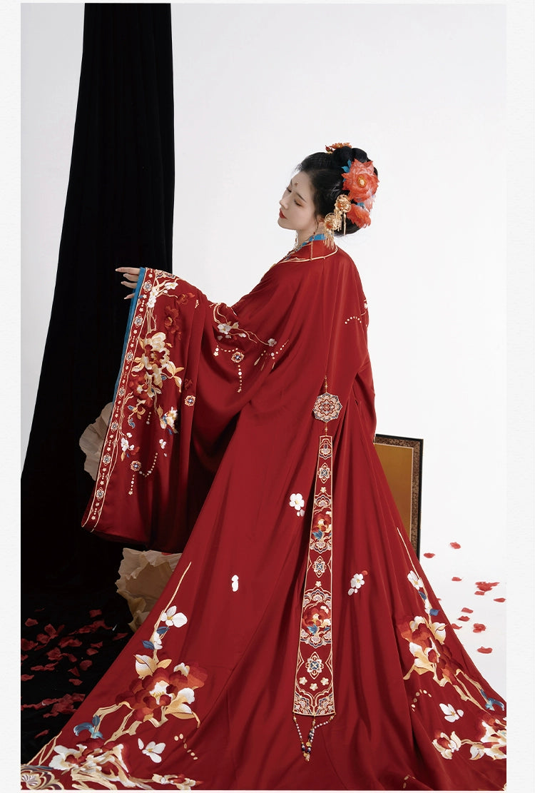 Home Authentic Tang-Style Bridal Hanfu – Custom Embroidered Red Gown with Flowing Grand Sleeves