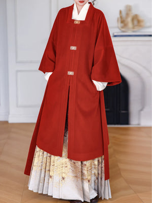 Ming Dynasty Square Collar Long Jacket – Improved Hanfu Coat for Autumn & Winter