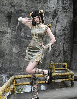 Spring Dragon Festival, Embroidered Short Cheongsam Dress Halloween