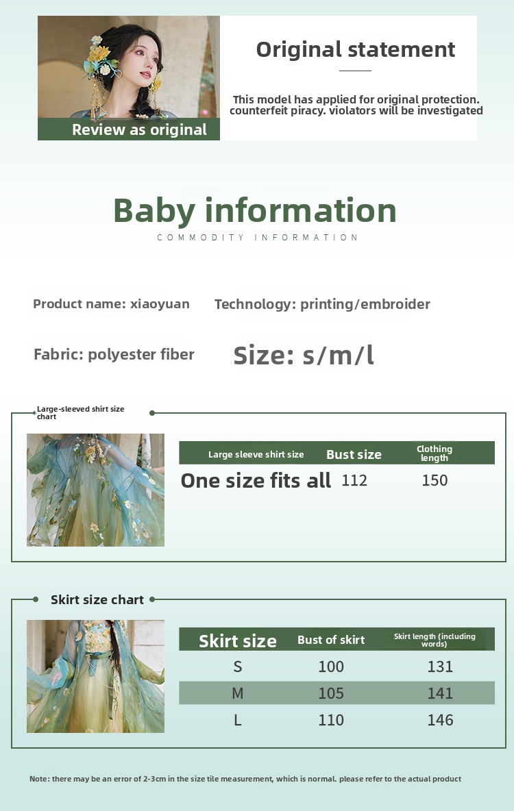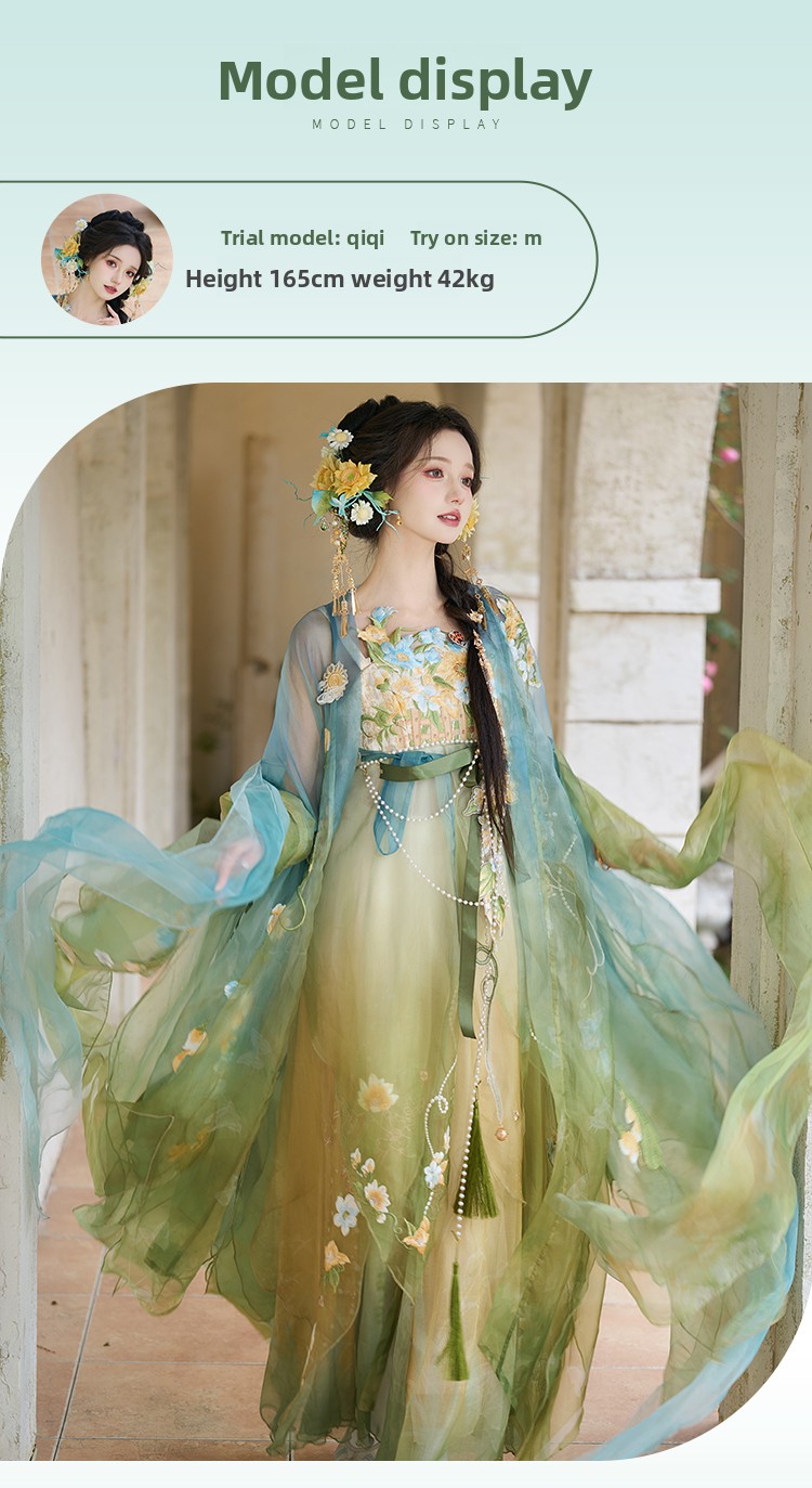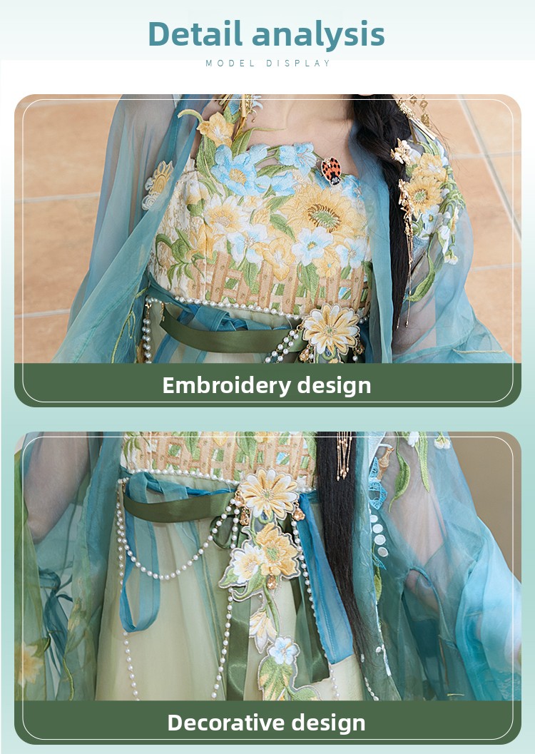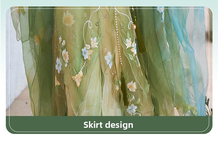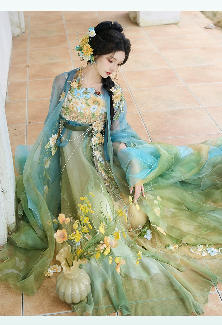 Blue & Green Hanfu Women's Large Sleeve Shirt Embroidery Spring and Summer