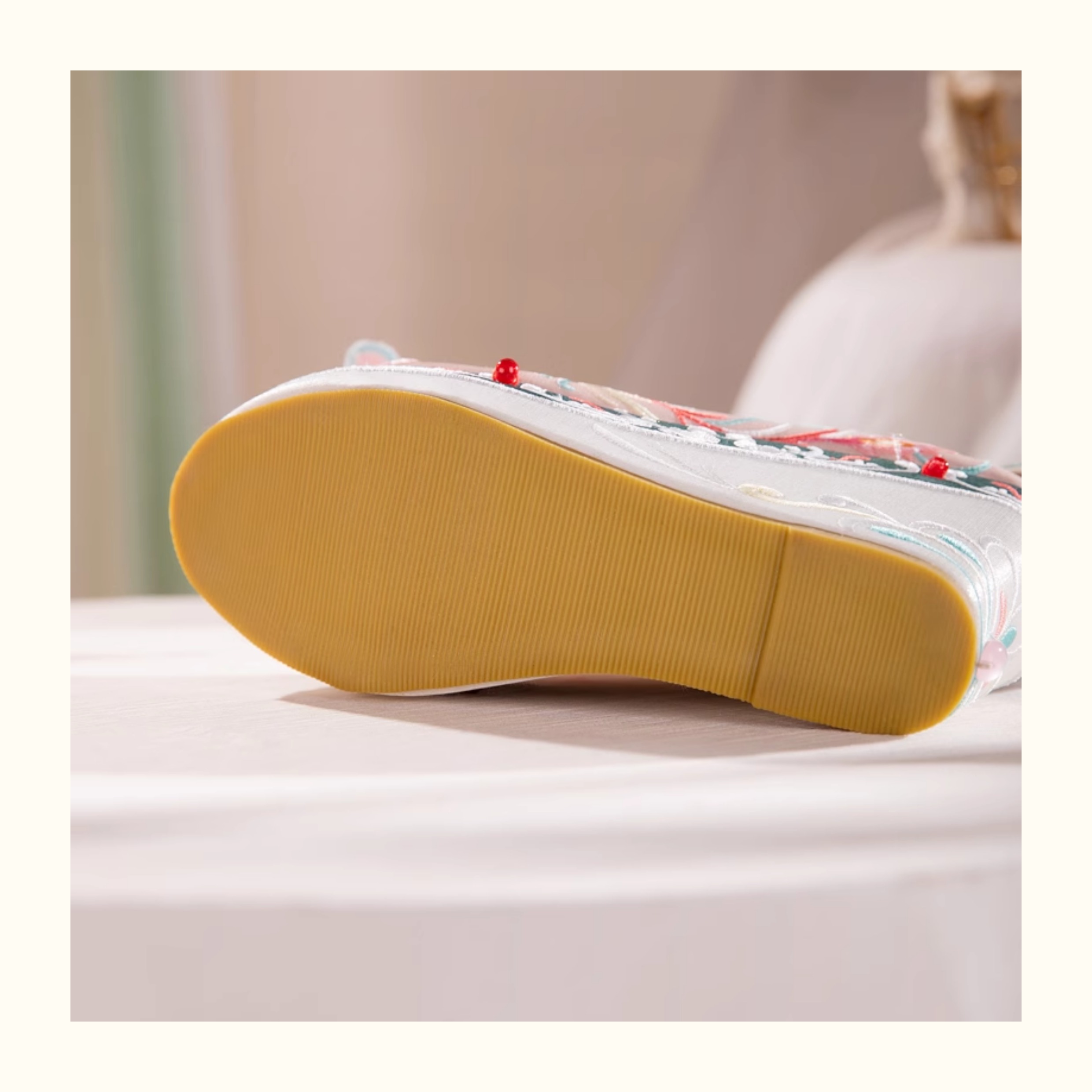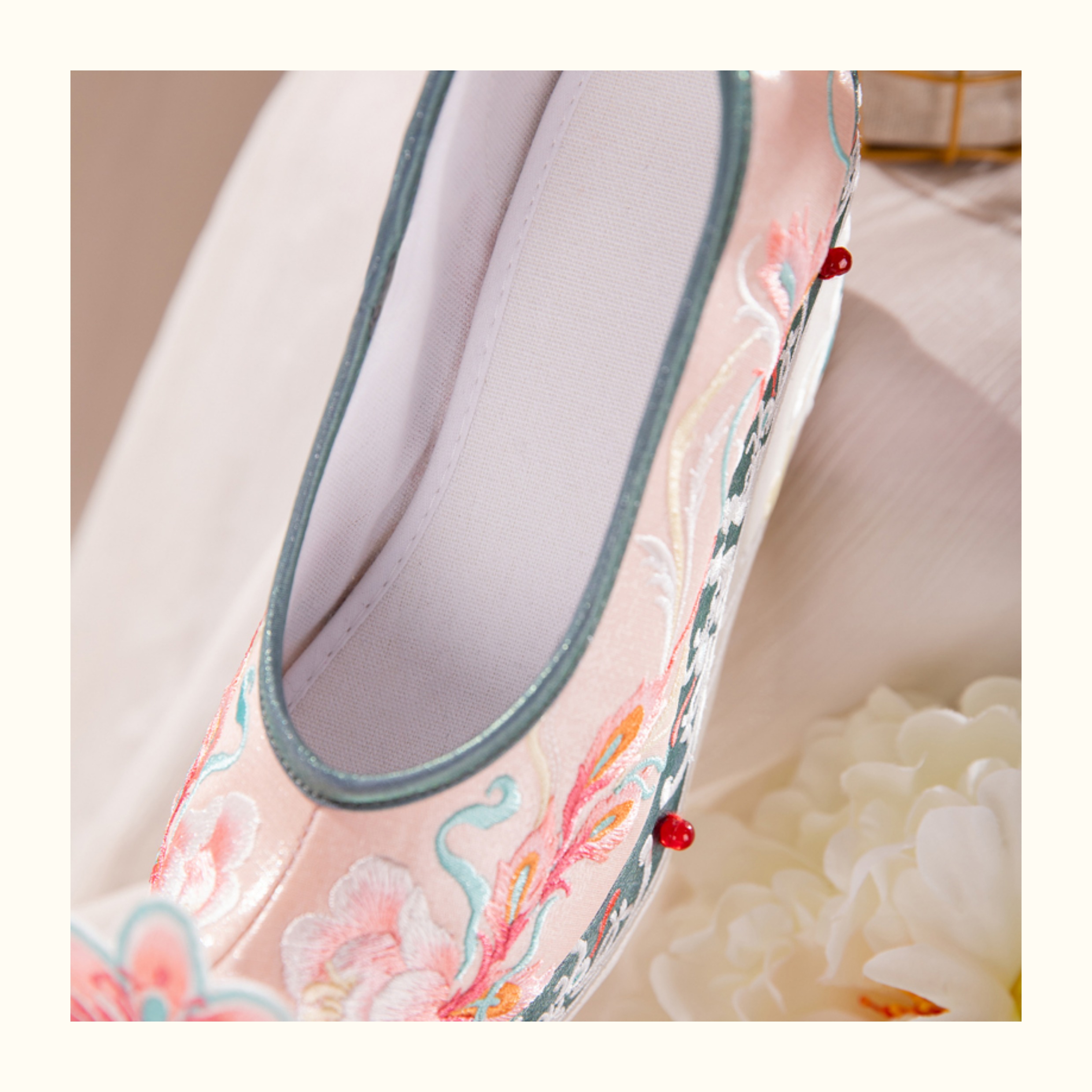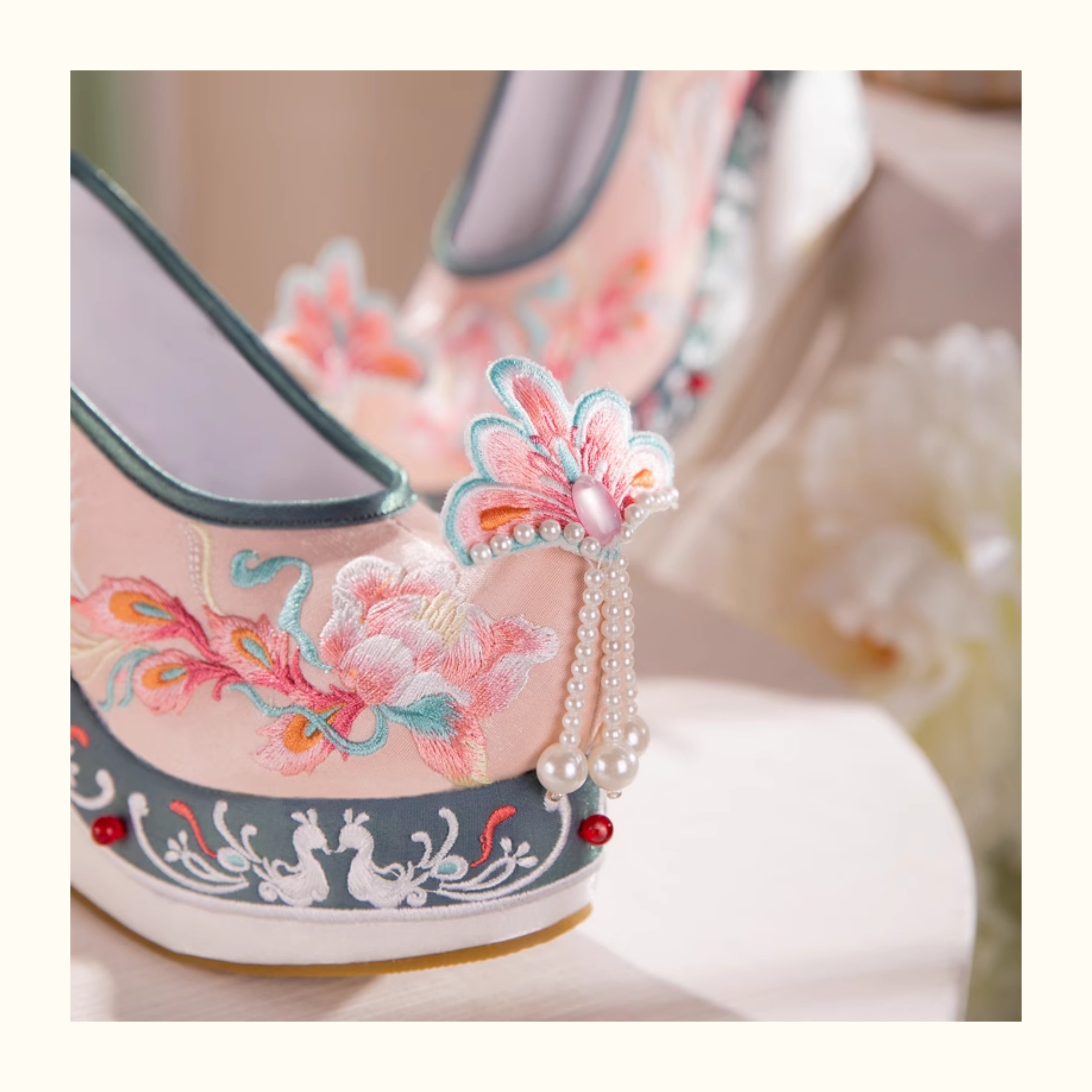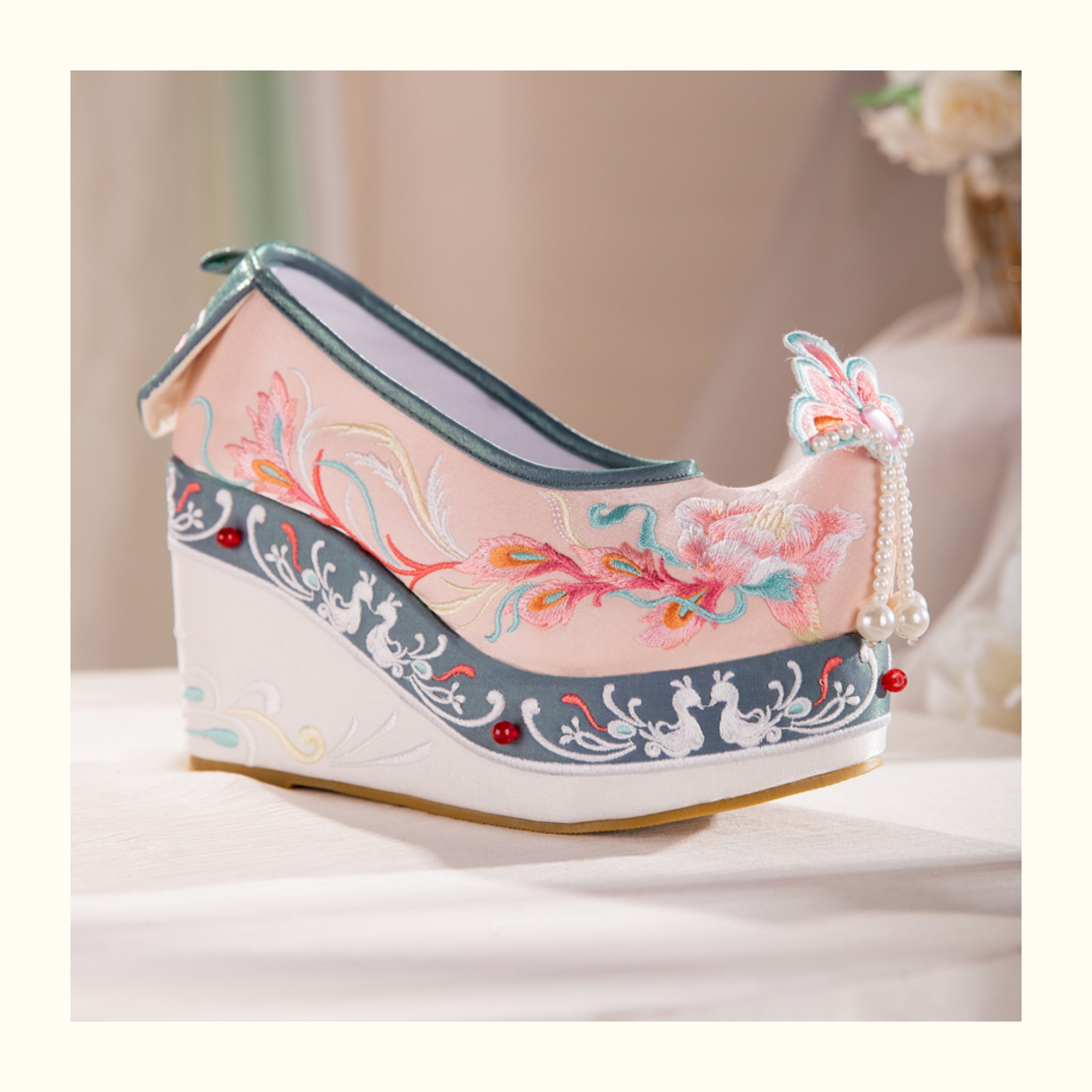 Blue Hanfu Embroidered Shoes – Women's Tang-Style Cloud-Toe Flats with 10cm Lift for Spring & Autumn