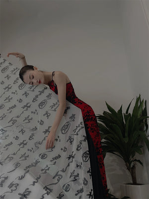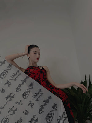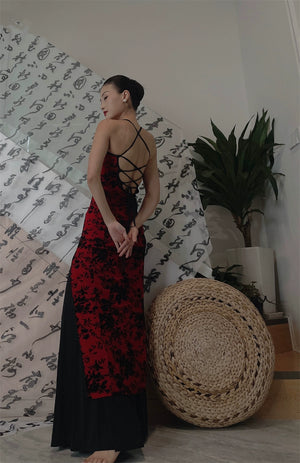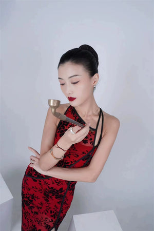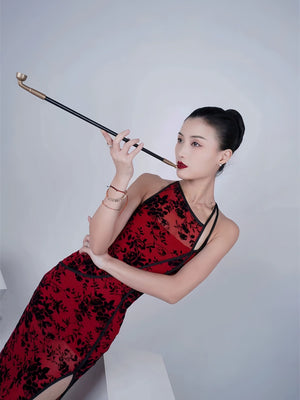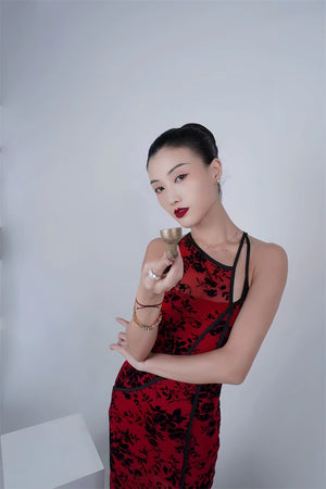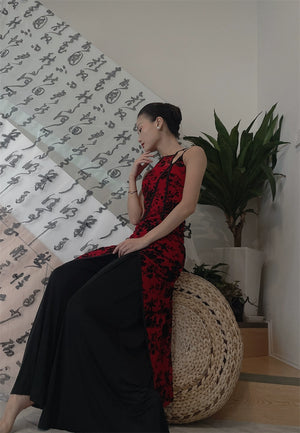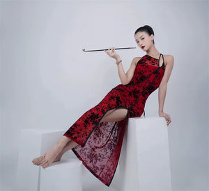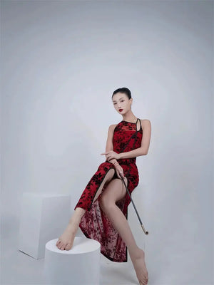 Burgundy Vintage Flocked Velvet Cheongsam – Modern Dance-Inspired Qipao Dress