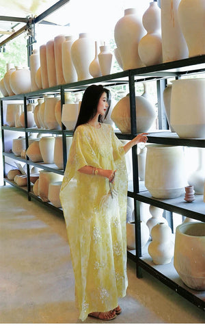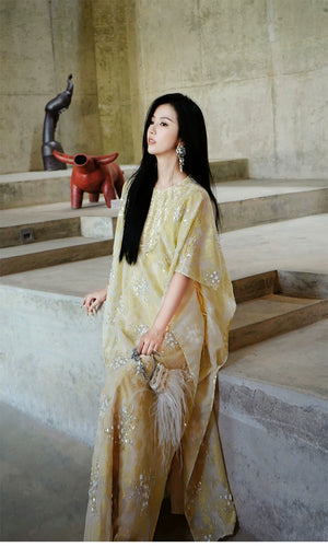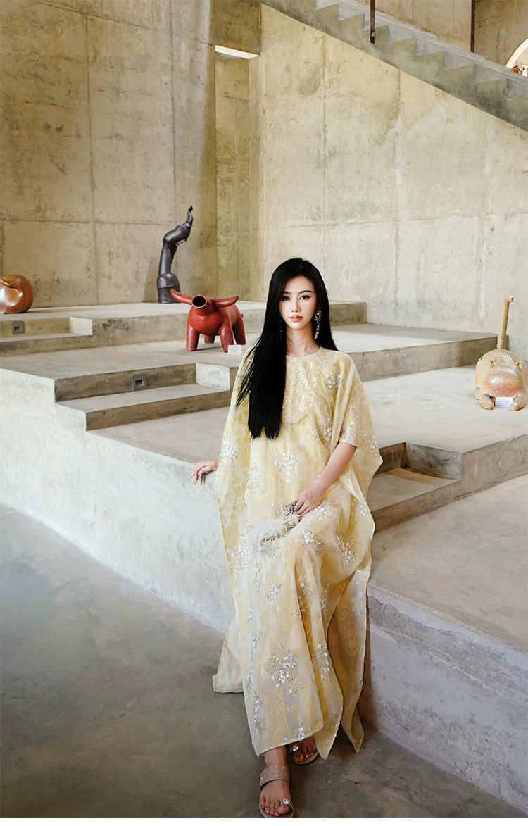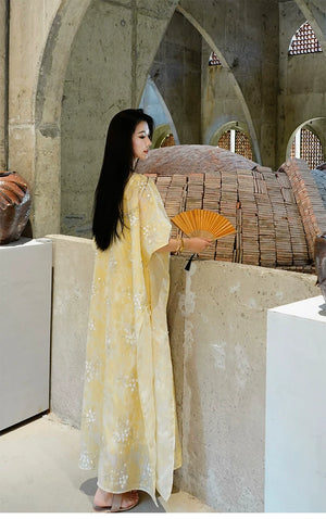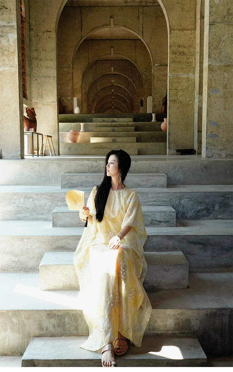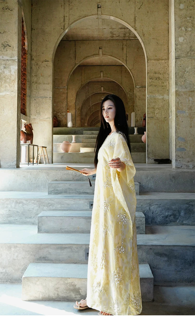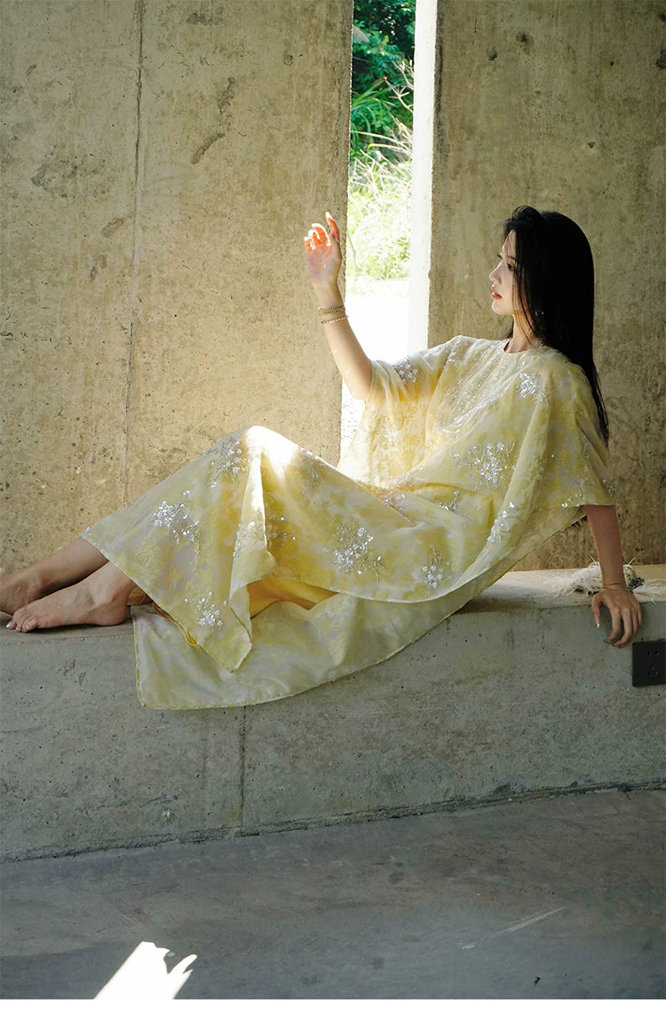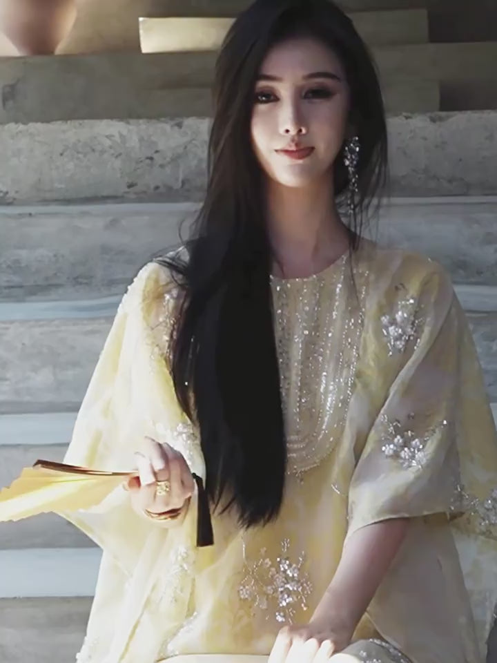 Graceful, luminous, and crafted with the most considered attention to detail — this Two-Piece Set pairs a beautifully constructed outer cape / top (外搭上衣) with a slip dress (吸带裙) for a complete, coordinated hanfu ensemble of extraordinary visual presence. The outer cape features long sleeves and a structured shoulder, while the slip dress offers a clean, elegant silhouette that moves with grace. Available in sizes S through XL.